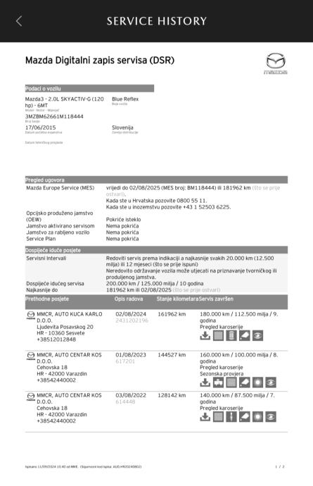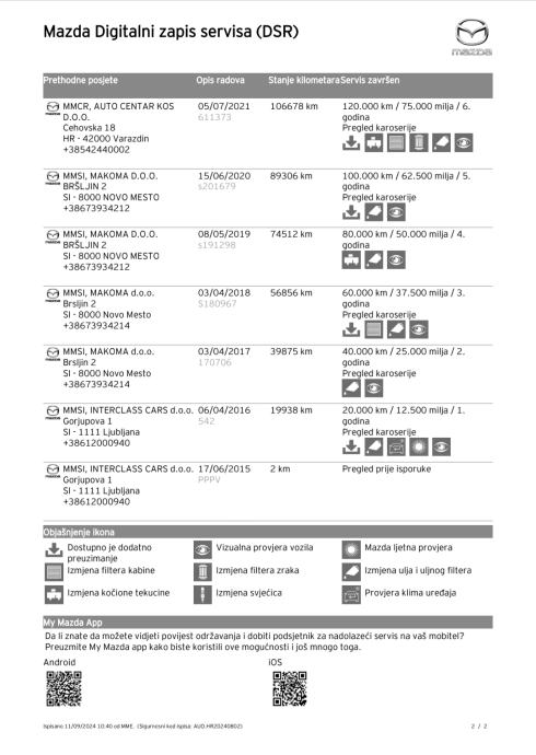 Auto je uredno servisiran na ovlaštenim Mazda servisima. Auto nikad nije bio u prometnoj nesreći (tvornički lak na svakom elementu).