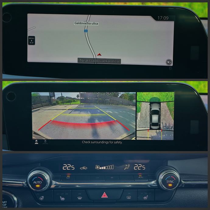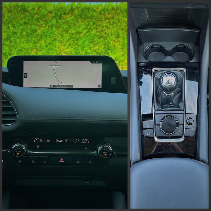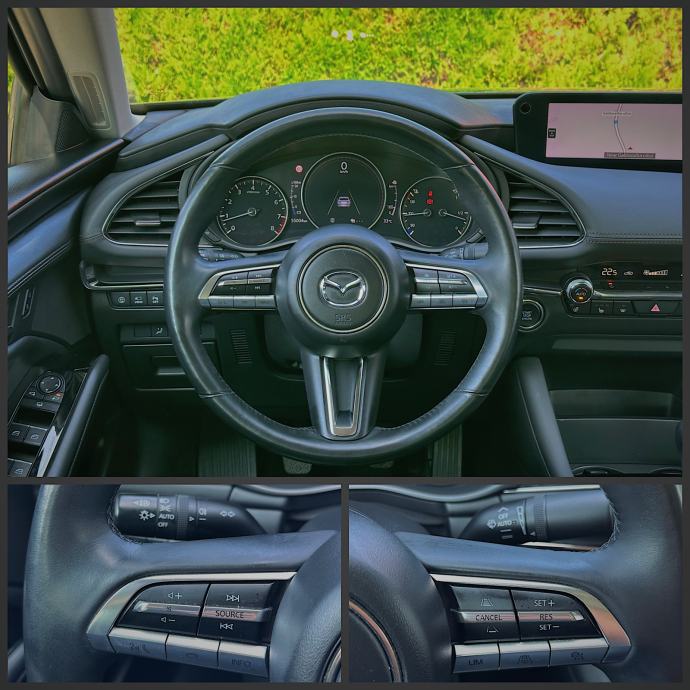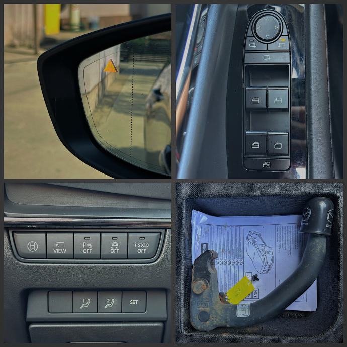 - LED prednja i stražnja svjetla, LED adaptivni farovi, Digitalni display, Head-Up Display, Navigacija, Prednji i stražnji parking senzori, 360° parking kamera, Tempomat, Original Mazda - Alu felge 18", Carplay & Android Auto, Kožna profilirana sjedala, Digitalni display, Head-up Display, Grijanje prednjih sjedala, Grijanje volana, Sustav pomoći vozaču: asistent za duga svjetla, Sustav pomoći vozaču: pomoć u prometnoj traci (praćenje traka), Podešavanje vozačevog sjedala na struju, Memorija vozačevog sjedala u 2 položaja, Follow me home, Električna parkirna kočnica (EPB), Hill holder, Zaslon u boji, Tvornički zatamnjena bočna i stražnje staklo, , Komande na volanu, RVM - Senzor mrtvog kuta (na retrovizorima), Volan (sportski/kožni, 3 kraka), Audio kontrola na volanu, Automatska svjetla, Senzor za kišu, Automatska dvozonska klima, Svjetla za maglu, Električno podešavanje retrovizora, Grijanje retrovizora, Električni podizači stakala, Putno računalo, Podesivi stup upravljača, Sustav kontrole tlaka u gumama, Naslon za ruku (prednji+stražnji s držačem za čaše), Unutarnje ogledalo s automatskim zatamnjivanjem, Komplet za popravak guma, Niska emisija u skladu s emisijskim standardom Euro 6, Kožna ručica mjenjača, ISOFIX sustav dječjih sjedala, Rolo zavjesa stražnjeg stakla, Preklapanje stražnjih sjedala, Svjetlo pokazivača smjera integrirano u vanjsko ogledalo, Bluetooth sučelje, Univerzalno sučelje (USB / iPod / AUX veza), itd..