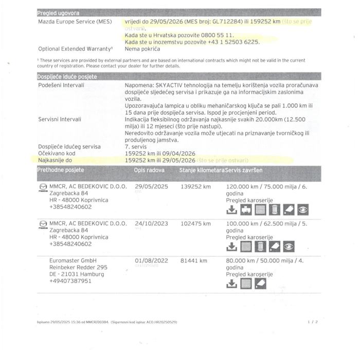 ZADNJI SERVIS NAPRAVLJEN 29.05.2025. na 139 252 km