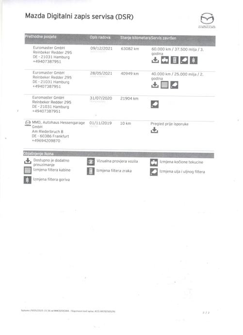 SERVISNA KNJIGA, SVE RAĐENO U MAZDI