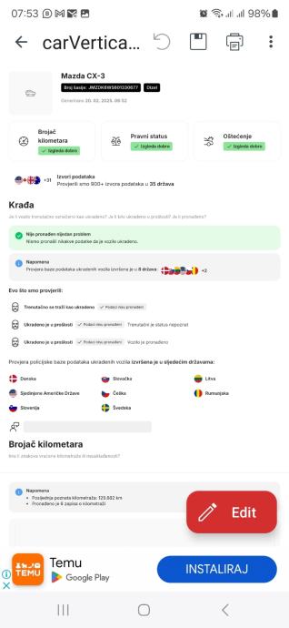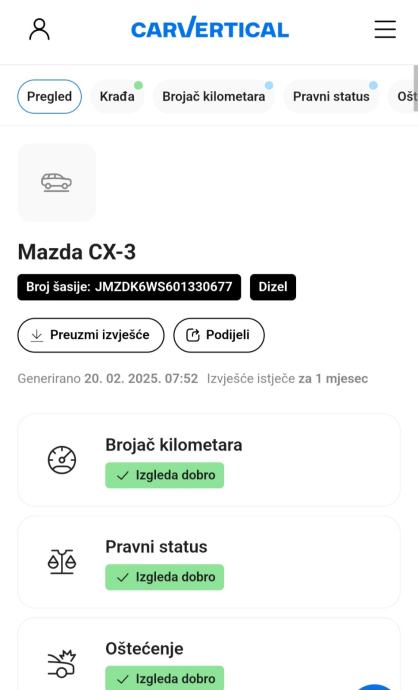 >CarVertical izvješće kompletno te u cijelosti uredno