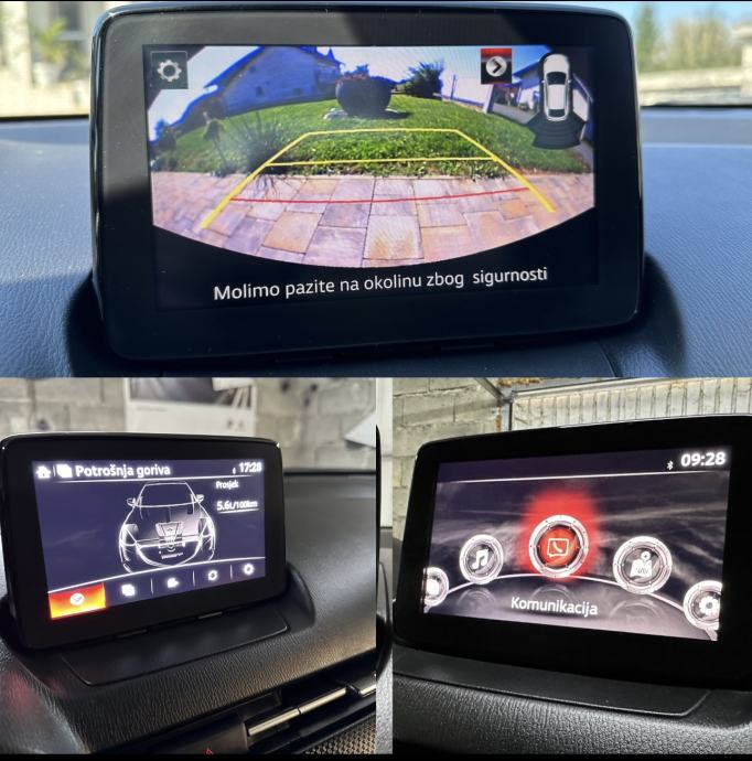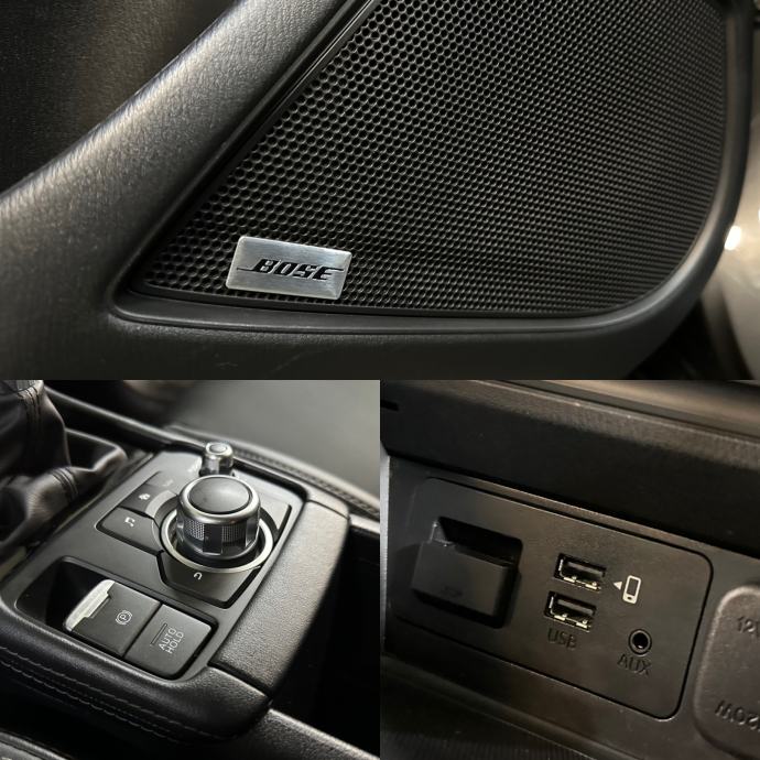 18“ alu felge Mazda BLACK DIAMOND CUT, automatska digitalna klima, tonirana stakla, SCBC-smart city brake support, sustav Radara, kamera koji prati situaciju ispred vozila i po potrebi u gradskoj vožnji koči u potpunosti sam …da spriječi nalet na pješaka ili vozila u koloni.