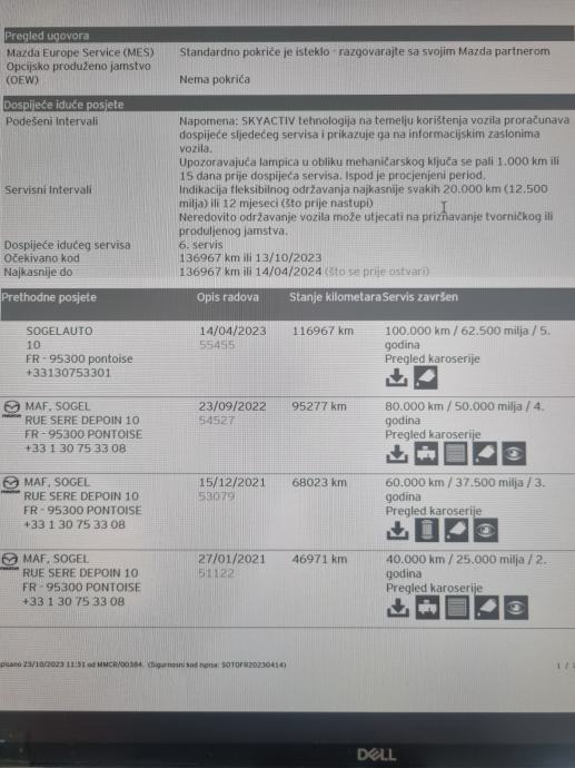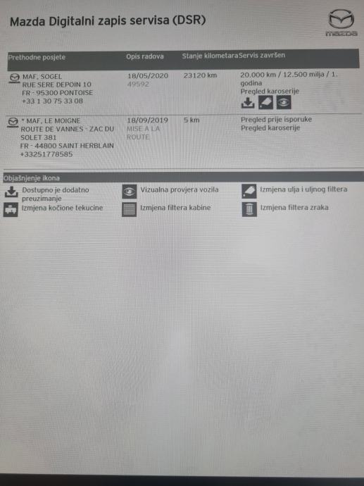 Motor redovito servisirana prema planu održavanja u ovlaštenom Mazda servisu