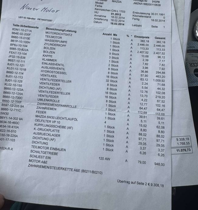 Na 270.000 km izvršena generalna obnova motora i mjenjača, s računom od 11.000€ kao dokazom