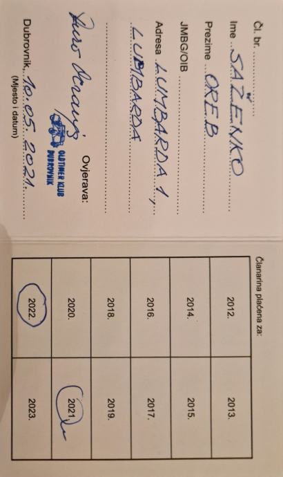 - OD 2021godine JE UČLANJEN U OLDTIMER KLUB DUBROVNIK.