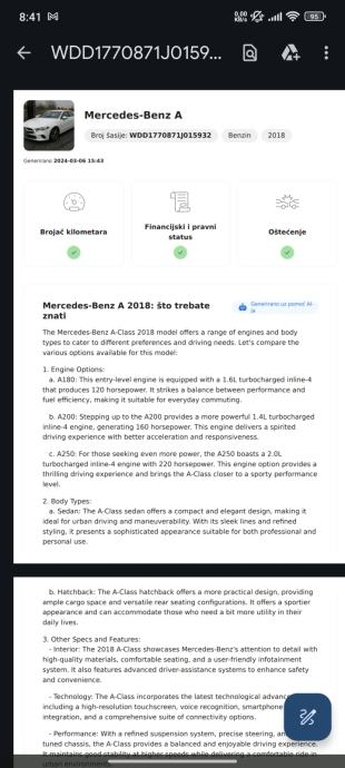 Mercedes-Benz A-klasa 200 - SERVISNA KNJIGA