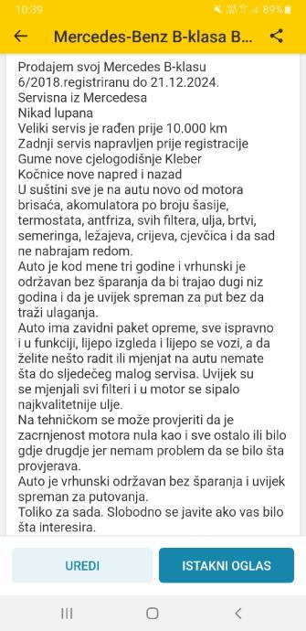 Na licu mjesta možemo napravit cijenu na obostrano zadovoljstvo. Jednostavno obožavam B-klase da sam prvu kupio čim se proizvela 2005.W245 koju još uvijek vozimo do sad ove najnovije b-klase W247.