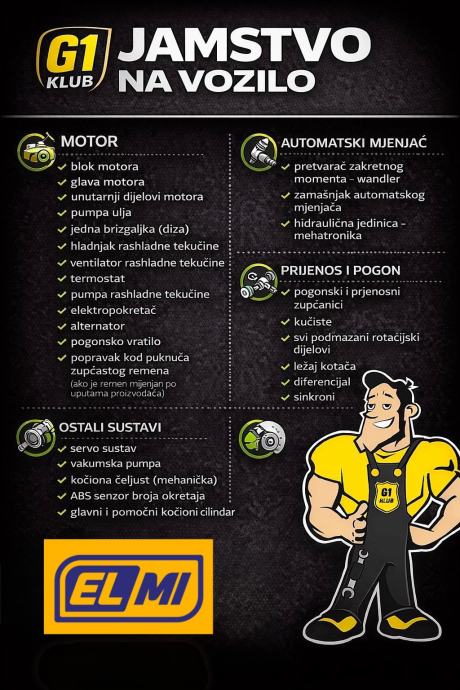 Osnovno jamstvo na motor, mjenjač i kočioni sustav u trajanju od 12 mjeseci i HAK asistencija 24/7.