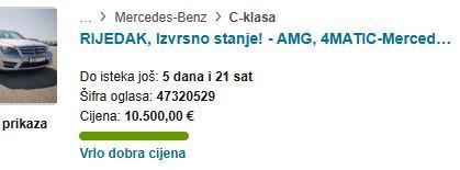 Prodajem rabljeno vozilo: Mercedes-Benz C-klasa