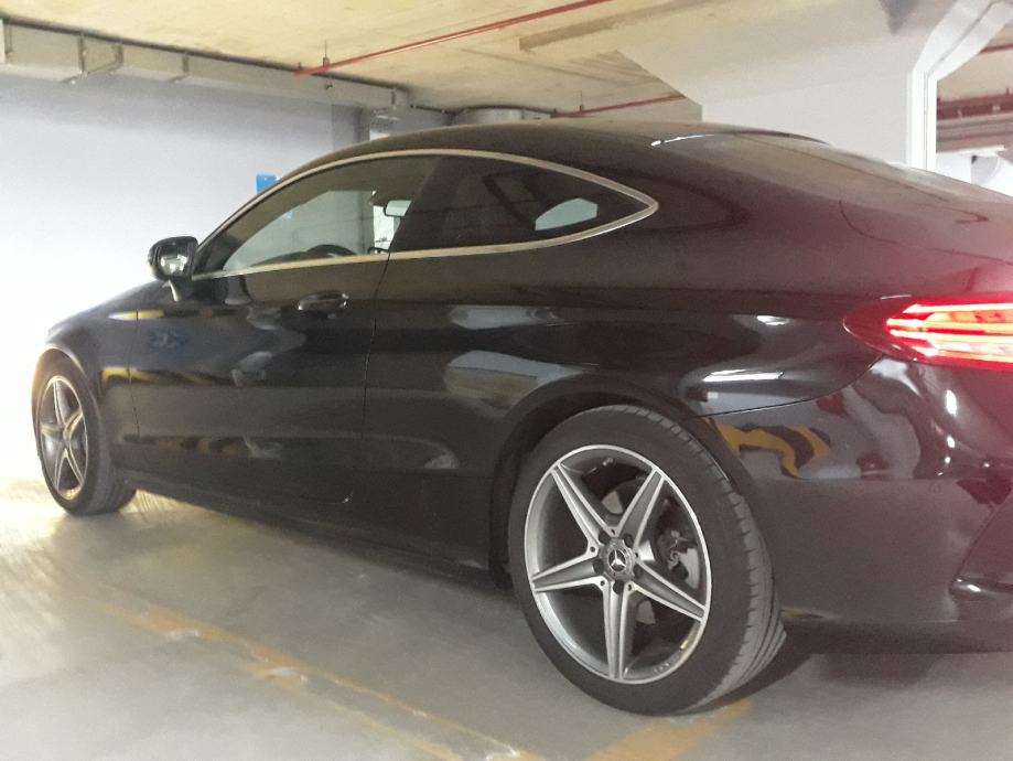 Dva seta guma, ljetne sa AMG zvijezdama i zimske sa širim zvijezdama. Kupljen 2018 g. u Mercedesovom salonu u Stuttgartu sa 8.200 km i od onda vožen kao drugi auto. Stalno garažiran i čuvan.