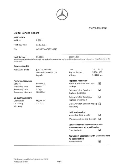 Servisiran isključivo u ovlaštenom servisu (Jolly Zagreb) - svi računi servisa sačuvani. Servisna povijest i zadnji servis (25.11.2025) su među fotografijama.
