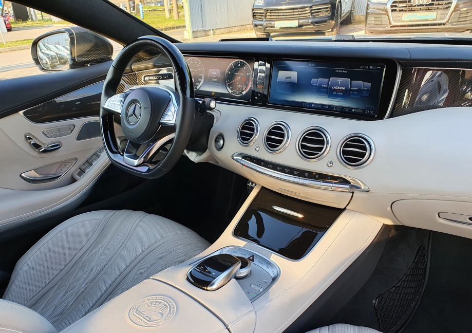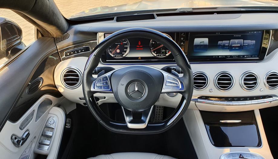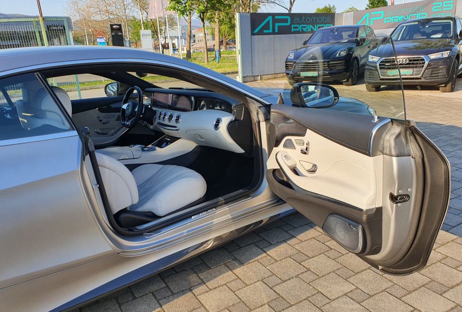 C217 V8 Bi-Turbo, 585KS/900Nm-SPEEDSHIFT, AMG Exterior Carbon paket, Magno Alalnite Gray siva boja / Exclusive koža, Driving Assistance package Plus: PRE-SAFE Plus sustav, Active Blind Spot Assist, Active Lane Keeping Assist, Distronic Plus sa Steer Assist, BAS Plus, PRE-SAFE kočnice, Brake Assist BAS PLUS, automatsko zatamnjenje unutranjeg retrovizora i vozačevog vanjskog retrovizora Remote Online, Uređaj za otvaranje garažnih vrata, Hlađeni pretinac straga, Panoramski stakleni krov sa MAGIC SKY CONTROL, Klimatizacija prednjih sjedala, Head-up display, Kamera 360°, Krovna obloga-crna tkanina, Digital Audio Broadcast (DAB), Držač za piće - dupli, Višefunkcijski sportski upravljač, Telefonski modul z Bluetooth+Paket univerzalne telefonije, LED Intelligent Light System, Prošireni blatobrani, Burmester High End 3D surround sound system, Grijanje i prozračivanje mirujućeg vozila sa daljinskim upravljanjem, uključuje i grijani spremnik vode za pranje vjetrobranskog stakla, Ukrasni elementi AMG - carbon/crni klavir lak, Dekorativni umetci - klavir lak, KEYLESS-Go paket: Keyless go, Hands free access, Kovani alu naplatci AMG -20"-10 krakova, Poklopac motora AMG - Carbon, Exclusive paket: presvlake AMG designo Exclusive napa koža, obloge pragova MB sa svijetlom, Podne prostirke AMG Exclusive, Kočnice u crveni boji sa znakom AMG.