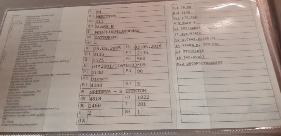 Mercedes-Benz E-klasa 200 CDI 326 TKM KĹIMA REG 5/26 8 KOM ALU S KNJ