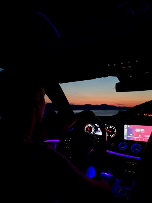 Oprema: AMG Line, Night paket, panoramski krov, Dynamic LED svjetla, kožna sportska sjedala s grijanjem, ambient osvjetljenje, premium sound system, navigacija, Apple CarPlay & Android Auto, Blind Spot Assist, parkirni senzori + stražnja kamera, 9G-Tronic automatik.