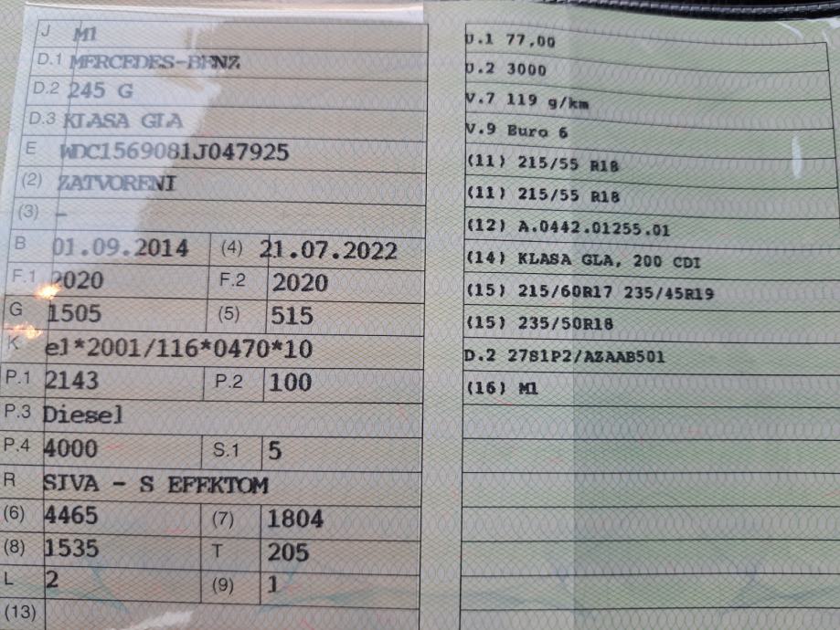 Prodajem rabljeno vozilo: Mercedes-Benz GLA