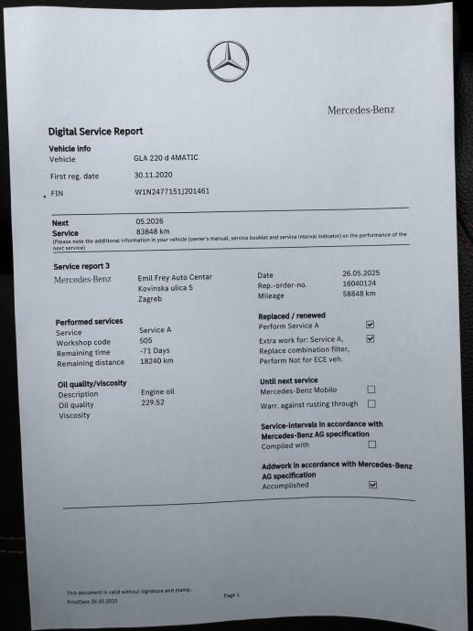 Posljednji servis bio je na 58.848km 26.05.2025.
