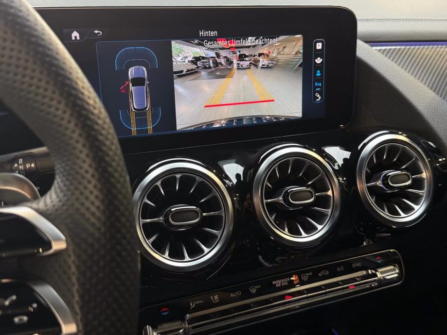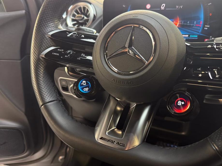 AMG Line linija dizajna i opreme (Styling paket (AMG / Vanjski dio), Paket udobnosti sjedala, Rešetka hladnjaka s dijamantnim izgledom, prednji spojler, stražnji spojler, Unutrašnjost: Ukrasi od karbonskih vlakana, papučice od nehrđajućeg čelika, sportski dizajn, crna obloga krova, AMG podne prostirke, Presvlake sjedala: Artico / Dinamica umjetna koža, Prednja sportska sjedala) Mreža/džep za prtljagu na naslonu prednjeg sjedala, dvostruki držači za čaše sprijeda, upravljač (nappa koža, spljošten dolje), izravno upravljanje s promjenjivom pomoći upravljača