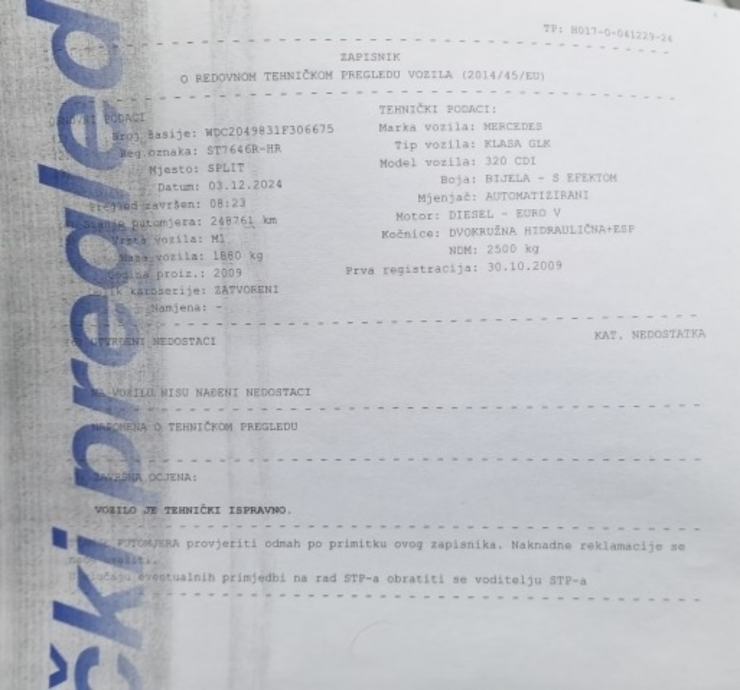 Tehnički pregled prošao 3.12.2024. bez ijedne primjedbe (prilozena slika u galeriji).
