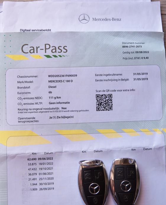 MERCEDES C 180d BUSINESS 2019 g. Servisna knjiga. Nema prijepisa.