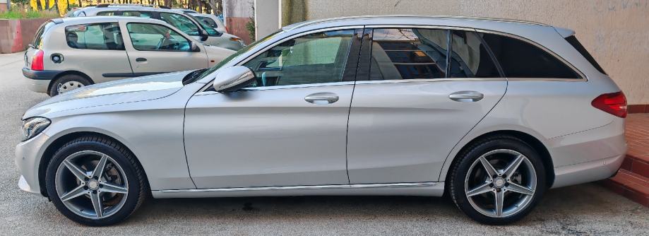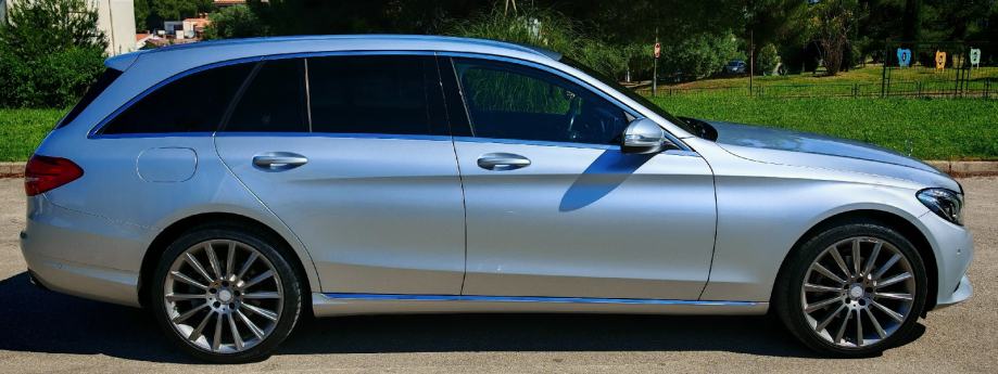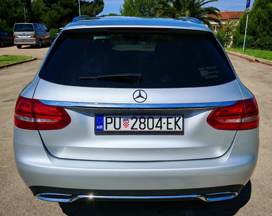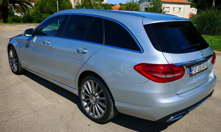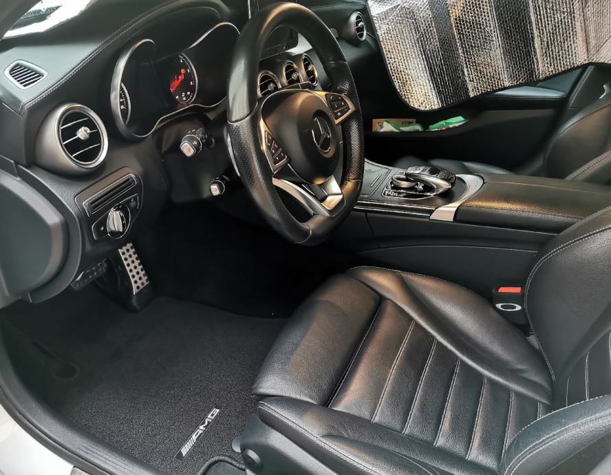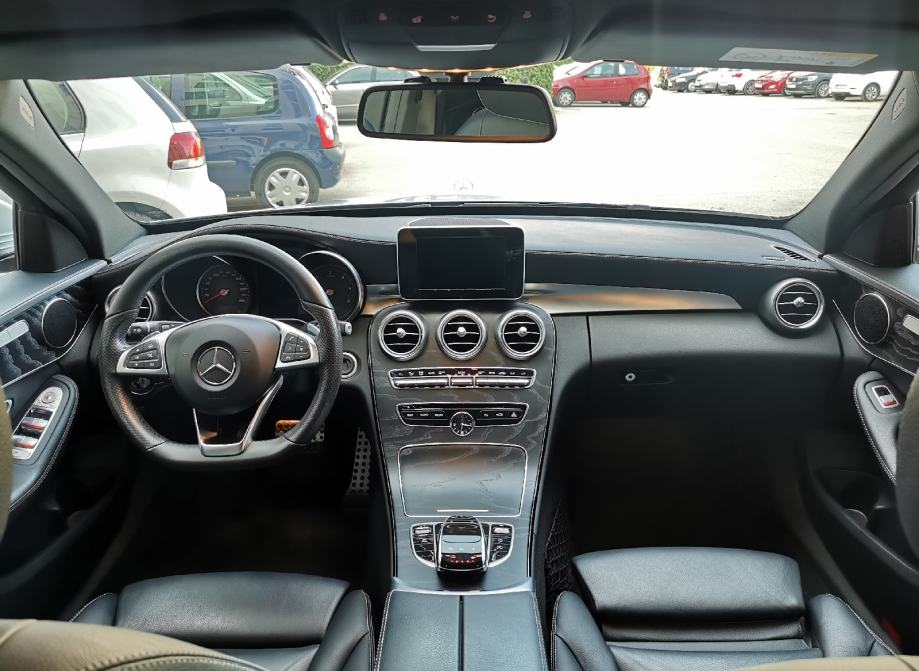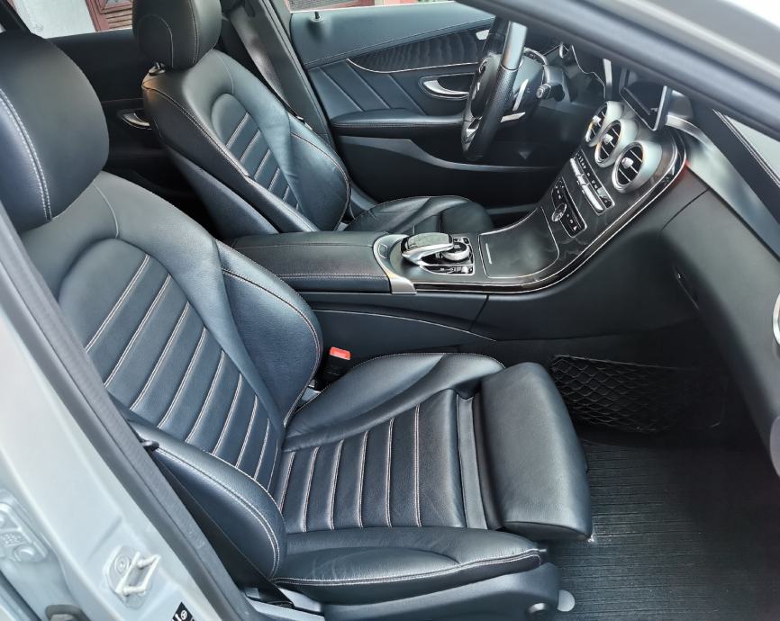 C klase u Exclusive opremi nema puno u HR a ova s AMG interijerom po vinu je jedina u prodaji u EU. AMG interijer je sportski-drukčiji od Exclusive i Avantgarde: aluminijske papučice, tepisi, crna obloga krova, volan s F1 ručicama, sjedala, kokpit i obloge na vratima su kožni s elementima crnog drveta. Proizvedena je 10/'14 ali je u prometu od 10/'16 tako da je u prometnoj '16. Treći sam vlasnik, prijašnji vlasnik ju je kupio od prijatelja i do tada je bila u foliji i servisirana u Mercedes servisu a ja sam stavio keramičku zaštitu laka koja ima garanciju do 8/'26 i nastavio ju servisirat u Mercedesu. Od dodatne opreme koja nije navedena: veći spremnik goriva 66l, Dynamic select za podešavanje rada motora, mjenjača i volana u 5 razina (Individual, Sport+, Sport, Comfort i Economy), HAC pomoć pri kretanju na uzbrdici, Autohold dvaput stisneš kočnicu i sam stoji, uređaj za prevenciju sudara sam koči, Active park assist sam parkira, upozorenje na umor, ILS svjetla (aktivno za vožnju u zavojima, zakretno, za autocestu sam pali i gasi kratka, duga i za maglu), osvjetljenje u retrovizorima, automatsko zatamnjivanje retrovizora, ambijentalno osvjetljenje interijera u 3 boje, 2 USB ulaza...