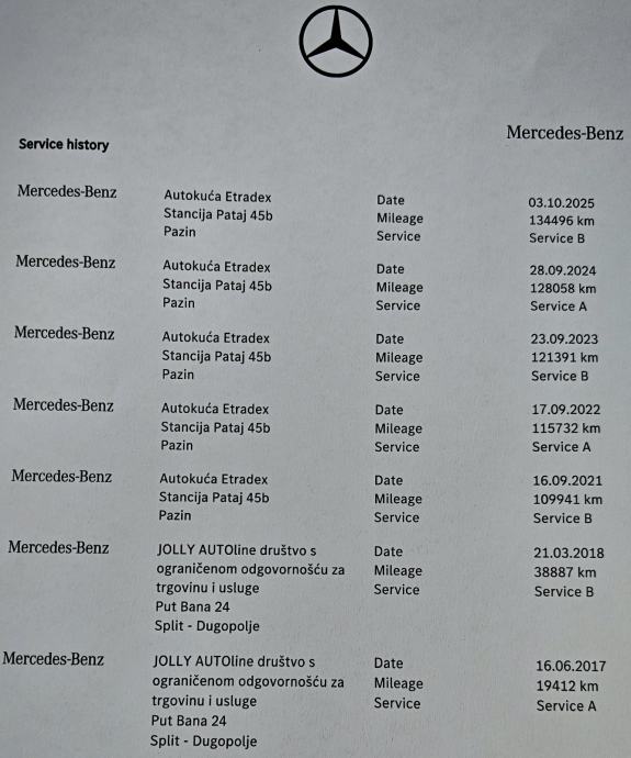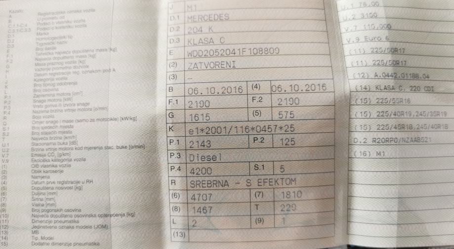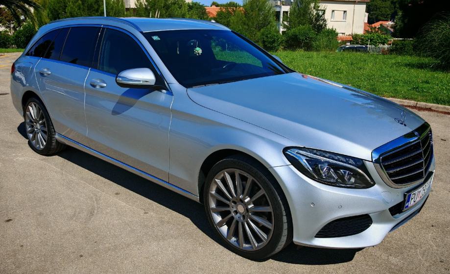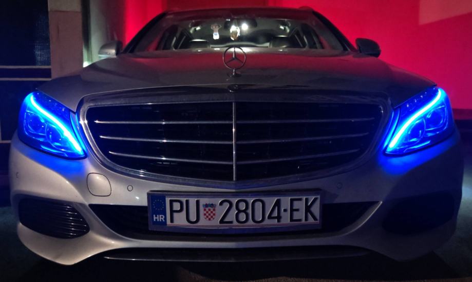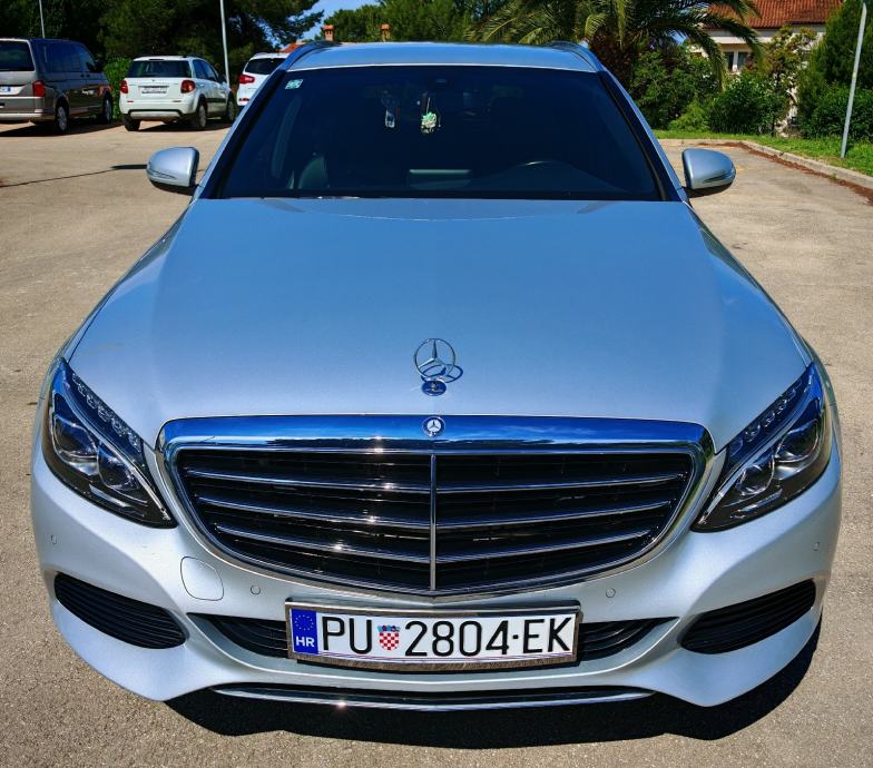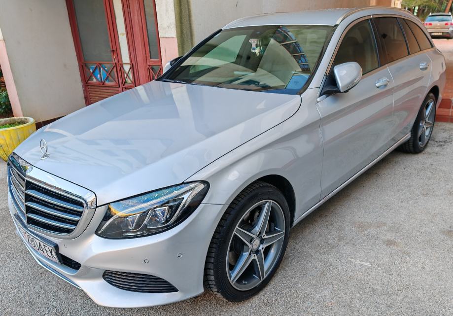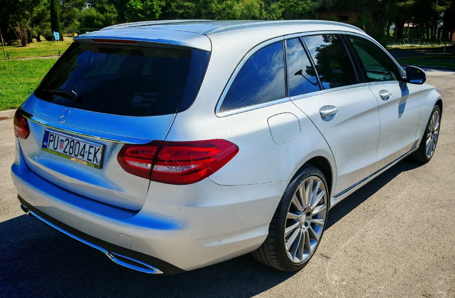 C klase u Exclusive opremi nema puno u HR a ova s AMG interijerom po vinu je jedina u prodaji u EU. AMG interijer je sportski-drukčiji od Exclusive i Avantgarde: aluminijske papučice, tepisi, crna obloga krova, volan s F1 ručicama, sjedala, kokpit i obloge na vratima su kožni s elementima crnog drveta. Proizvedena je 10/'14 ali je u prometu od 10/'16 tako da je u prometnoj '16. Treći sam vlasnik, prijašnji vlasnik ju je kupio od prijatelja i do tada je bila u foliji i servisirana u Mercedes servisu a ja sam stavio keramičku zaštitu laka koja ima garanciju do 8/'26 i nastavio ju servisirat u Mercedesu. Od dodatne opreme koja nije navedena: veći spremnik goriva 66l, Dynamic select za podešavanje rada motora, mjenjača i volana u 5 razina (Individual, Sport+, Sport, Comfort i Economy), HAC pomoć pri kretanju na uzbrdici, Autohold dvaput stisneš kočnicu i sam stoji, uređaj za prevenciju sudara sam koči, Active park assist sam parkira, upozorenje na umor, ILS svjetla (aktivno za vožnju u zavojima, zakretno, za autocestu sam pali i gasi kratka, duga i za maglu), osvjetljenje u retrovizorima, automatsko zatamnjivanje retrovizora, ambijentalno osvjetljenje interijera u 3 boje, 2 USB ulaza...