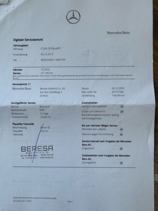 Mercedes C-klasa 200 CDI AVANTGARDE, NAVI, MERCEDES SERVISNA, MOD 2013