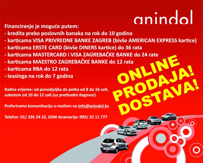 2.071 € >>> Mjesečna okvirna rata financiranjem putem leasinga (uz 20% učešća, na 7 godina) - brza realizacija!