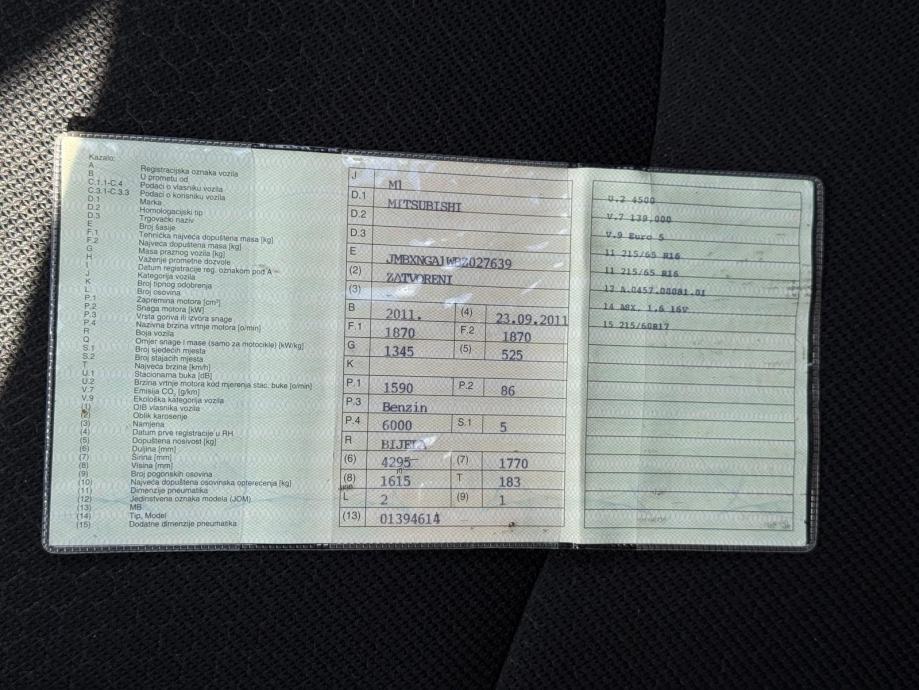 MITSUBISHI ASX 2WD 1,6 16V BENZIN-LPG 2011 REG.DO 12/2026 HR VOZILO