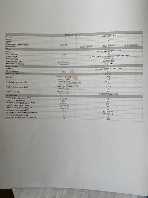 Metalik crni, 2022.g., prva registracija 2023., prvi vlasnik, 39.000 km, stanje - kao novi, bez ikakvih oštećenja, registriran do 2/2026.g., redovito servisiran u ovlaštenom Mitsubishi servisu, ukupna sistemska snaga 188 KS, baterija snage 13,8 kw, pogon 4x4.