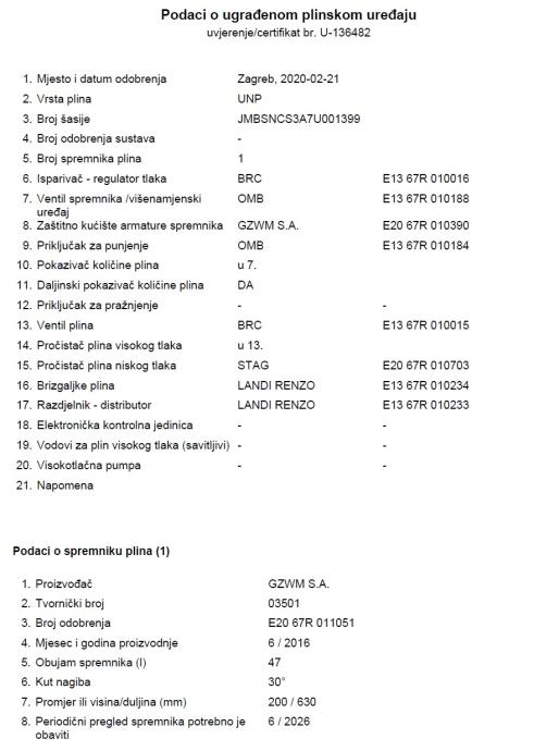 29.05,2025. g, napravljen servis, izmjena ulja, filtera, filter kabine, filter zraka, svječice, kablovi za paljenje, ulje za kočnice (račun na uvid)
