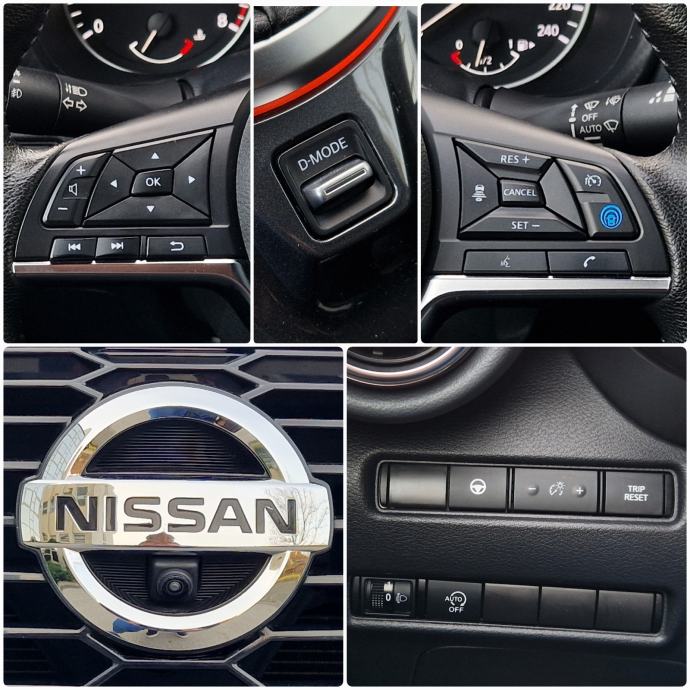 IMA BOGATI N-CONNECTA PEKET DODATNE OPREME: SERVO UPRALJVAČ,ABS,ESP,ASR,START-STOP SISTEM,CENTRALNO DALJINSKO ZAKLJUČAVANJE,KEYLESS - OTVARANJE/ZATVARANJE VOZILA BEZ UPOTREBE KLJUČA,ALARMNI UREĐAJ,BLOKADA MOTORA,PUTNO RAČUNALO,INFO SUSTAV ZA VOZAČA,KLIMA UREĐAJ - AUTOMATSKI,GRIJAČI PREDNJEG VJETROBRANSKOG STAKLA,CD MP3 RADIO,AUX USB PRIKLJUČAK,BLUETOOTH,ANDROID AUTO,AUTO CARPLAY,CENTRALNI EKRAN OSJETLJIV NA DODIR,NAVIGACIJSKI UREĐAJ ORIGINAL NISSAN SA KARTAMA EUROPE,ACC RADAR,ČITAČ-PREPOZNAVANJE PROMETNIH ZNAKOVA,SUSTAV UPOZORENJA NA NAPUŠTANJE PROMETNE TRAKE,ZADRŽAVANJE VOZILA U VOZNOJ TRACI,ZAŠTITA OD BOČNOG NALETA VOZILA,PRIPREMA ZA MOBILNI APARAT I RAZGOVOR BEZ RUKU,KOŽNI VIŠENAMJENSKI UPRAVLJAČ I RUČICA MJENJAČA,SPORTSKA SJEDALA OD VELURA,GRIJANJE PREDNJIH SJEDALA,VOLAN I SJEDALA PODESIVI PO VISINI,SREDIŠNJA KONZOLA ZA RUKU,DJELJIVA STRAŽNJA KLUPA,ZATAMNJENA STRAŽNJA STAKLA,METALIK BOJA,KROM PAKET,ALUMINIJSKI NAPLATCI ORIGINAL NISSAN 17",SPORTSKO PODVOZJE,SENZORI ZA POMOĆ PRI PARKIRANJU NAPRIJED I STRAGA,KAMERA 360" - PREDNJA,STRAŽNJA I BOČNE,SENZOR MRTVOG KUTA - UPOZORENJE NA NAILAZAK VOZILA U MRTVOM KUTU,LED DNEVNA, KRATKA I DUGA SVJETLA,AUTOMATSKO DUGO SVJETLO,LED SVJETLA ZA MAGLU,SENZOR ZA SVJETLO,SENZOR ZA KIŠU,STRAŽNJI KROVNI SPOJLER,MODOVI VOŽNJE (ECO,SPORT,STANDARD),EURO KUKA ZA VUČU PRIKLJUČNOG VOZILA (ATESTIRANA I UPISANA U HOMOLOGACIJU VOZILA),ELEKTRONSKA RUČNA KOČNICA,AUTO HOLD-SUSTAV ZA POMOĆ PRI KRETANJU NA UZBRDICI,ZRAČNI JASTUCI...