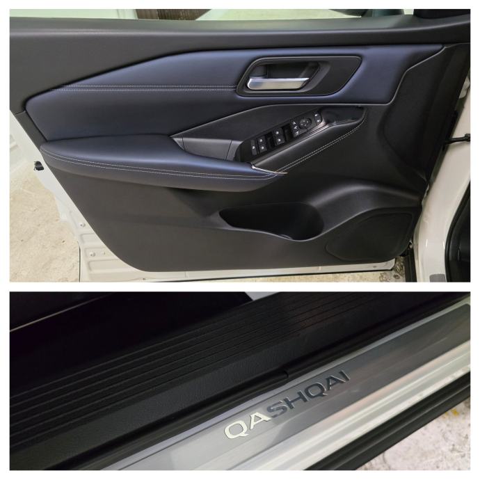 Oprema: **PREMIERE EDITION PAKET OPREME**, 1.3 DIG-T MHEV, benzinski Motor 1.3 Ltr. Mild-Hybrid 116 kW = 158 KS, 1332 cm3, **BOJA: BIJELA PERLA METALIK BOJA (POSEBAN DIJAMANTNI SJAJ)**, **AUTOMATSKA KLIMA 2 ZONE**, **AUTOMATSKI MJENJAČ**, **POMOĆ PRI PARKIRANJU: PREDNJI I STRAŽNJI PARKING SENZORI + 360 STUPNJEVA KAMERA SA DINAMIČKIM SMJERNICAMA**, ABS, **TVORNIČKI ZATAMNJENA STRAŽNJA STAKLA**, **HEAD-UP DISPLAY**, **ADAPTIVNI TEMPOMAT ADAPTIVE CRUISE CONTROL (ACC) SUSTAV = TEMPOMAT SA KONTROLOM UDALJENOSTI VOZILA – DRŽI ODSTOJANJE OD VOZILA – AUTO SAM VOZI UBRZAVA/USPORAVA/PRATI TRAKE**, **FULL LED ADAPTIVNA SVJETLA – FAROVI**, **LED DNEVNA SVJETLA**, **LED STRAŽNJA SVJETLA**, **AUTOMATSKA SVJETLA + SENZOR SVJETLA**, **LED SVJETLA ZA MAGLU**, ASISTENT ZA DUGA SVJETLA, **SENZOR ZA KIŠU**, **ALARMNI SUSTAV**, **AMBIJENTALNA RASVJETA**, **ANDROID AUTO/APPLE CARPLAY/BLUETOOTH/USB/WLAN/WIFI HOTSPOT**, ZRAČNI JASTUCI: PREDNJI/STRAŽNJI/BOČNI, **PANORAMSKI KROV SA ELEKTRIČNOM ZAVJESOM – ZAŠTITA OD SUNCA**, **SJEDALA U KOMBINACIJI KOŽE I TEKSTILA**, **GRIJANJE PREDNJIH SJEDALA**, SJEDALA PODESIVA PO VISINI, DUBINI, SPORTSKA SJEDALA, PREDNJI KOŽNI NASLON ZA RUKE SA PRETINCEM ZA SKLADIŠTENJE STVARI, **GRIJANO PREDNJE VJETROBRANSKO STAKLO (GRIJAČI U STAKLU ZA BRZO ODMRZAVANJE VOZILA PO ZIMI ''NEMA STRUGANJA LEDA'' + GRIJANO STRAŽNJE STAKLO**, **MULTIFUNKCIONALNI KOŽNI UPRAVLJAČ + PODESIVI UPRAVLJAČ PO VISINI I DUBINI + GRIJANJE UPRAVLJAČA + F1 +- MJENJANJE BRZINA NA VOLANU (formula)**, **POMOĆ PRI KRETANJU VOZILA NA UZBRDICI/NIZBRDICI = AUTO-HOLD FUNKCIJA ZADRŽAVANJA VOZILA**, **DRIVE MODE = NEKOLIKO ODABIRA NAČINA VOŽNJE 1. SPORT, 2. STANDARD, 3. ECO**, PUTNO RAČUNALO, ** VELIKI NAVIGACIJSKI SUSTAV ** NISSAN CONNECT NAVIGACIJSKI SISTEM KARTE CIJELE EUROPE + ** VIRTUALNA INSTRUMENTALNA PLOČA – COCKPIT **, KROVNI NOSAČI, ELEKTRIČNO PODEŠAVANJE RETROVIZORA + GRIJANJE RETROVIZORA, SKLOPIVI RETROVIZORI, LED TREPTAJUĆA SVJETLA INTEGRIRANA U VANJSKO OGLEDALO, ELEKTRIČNI PODIZAČI STAKLA X 4, ELEKTRIČNI IMOBILIZATOR, ESP, HANDSFREE, **KEYLESS GO – SUSTAV ULASKA U VOZILO BEZ KLJUČA**, PALJENJE VOZILA NA GUMB, KONTROLA GLASA, UPOZORENJE OGRANIČENJA BRZINE, PREPOZNAVANJE PROMETNIH ZNAKOVA NA CESTI, INDUKCIJSKO PUNJENJE ZA PAMETNE TELEFONE, AUTOMATSKO ZATAMNJENJE UNUTARNJEG OGLEDALA, ISOFIX SJEDALA ZA DJECU, LUMBALNA POTPORA ZA KRALJEŽNICU, UPOZORENJE NA UMOR VOZAČA – PREDUGA VOŽNJA, INTEGRIRANI SUSTAV MUZIKE, RADIO DAB, **ASISTENT ZA HITNO KOČENJE VOZILA**, SUSTAV HITNIH POZIVA, KONTROLA PRITISKA TLAKA U GUMAMA, CENTRALNO ZAKLJUČAVANJE VOZILA, SERVO UPRAVLJAČ, KONTROLA PROKLIZAVANJA VOZILA, KONTROLA PRAČENJA TRAKA SA ZADRŽAVANJEM VOZILA U VOZNOJ TRACI, START/STOPP AUTOMATIK – MOGUČNOST ISKLJUČENJA, **SENZORI ZA MRTVI KUT**, TOUCHSCREEN EKRAN, DJELJIVA STRAŽNJA KLUPA SA NASLONOM ZA RUKE, VELIKI PRTLJAŽNI PROSTOR + DUPLO DNO SA PREGRADAMA, AUX IN, PRIKAZ VANJSKE TEMPERATURE NA EKRANU, 5 VRATA, 5 SJEDALA, AUDIOSYSTEM, SERVICE-SYSTEM; GOOGLE SERVICES, NISSAN CONNECT SERVICES, DETEKCIJA POKRETNIH OBJEKATA MOD DETEKCIJA PJEŠAKA I POKRETNIH OBJEKATA, BRAVA NA STRAŽNJIM VRATIMA,UPOZORENJE NA SUDAR NAPRIJED (FCW), DETEKCIJA KRETANJA OBJEKATA MOD, ELEKTRIČNA ''RUČNA'' PARKING KOČNICA, 12V UTIČNICE, **ORIGINAL NISSAN ALU FELGE 235/55 R18 SA GUMAMA**, COC DOKUMENT - CERTIFIKAT VOZILA, UREDNA NISSAN SERVISNA KNJIŽICA + NOVI NISSAN SERVIS, 12 MJ. JAMSTVO, NISKI ZAGAĐIVAČ U SKLADU SA STANDARDOM EMISIJE EURA 6 ITD...ITD...