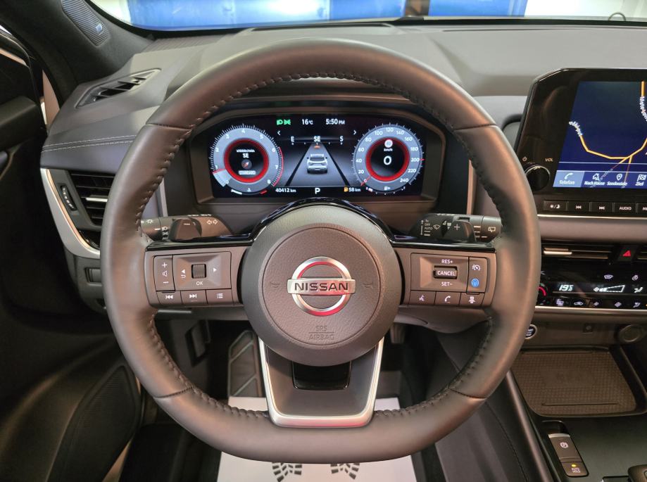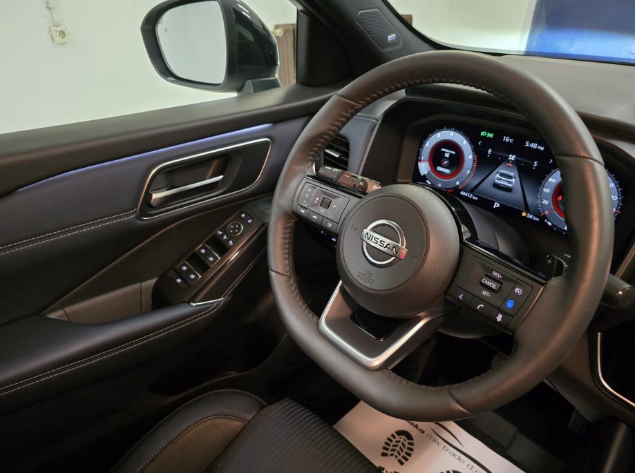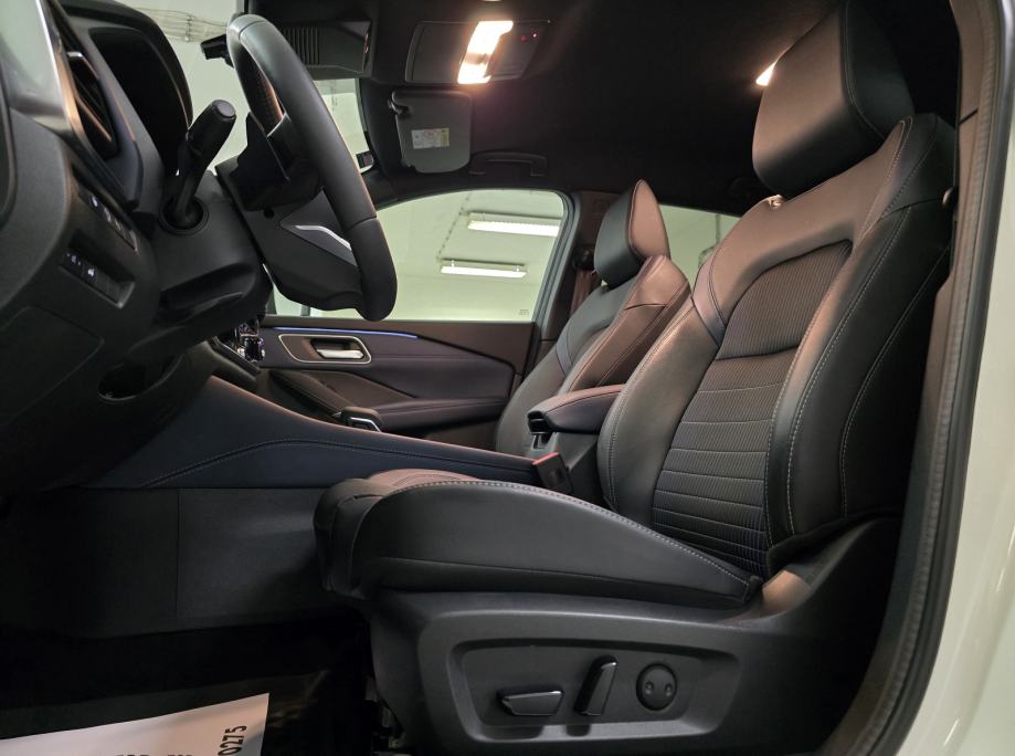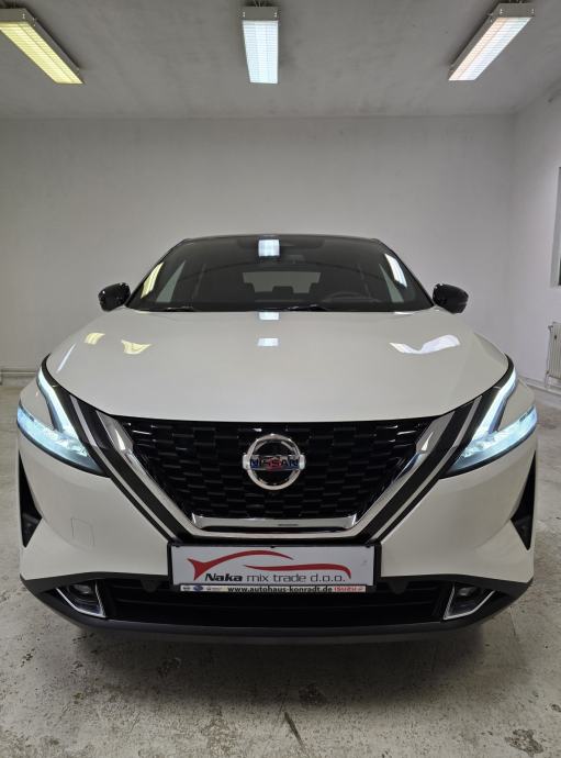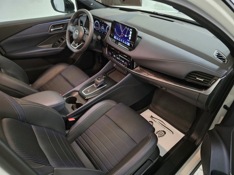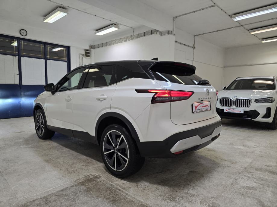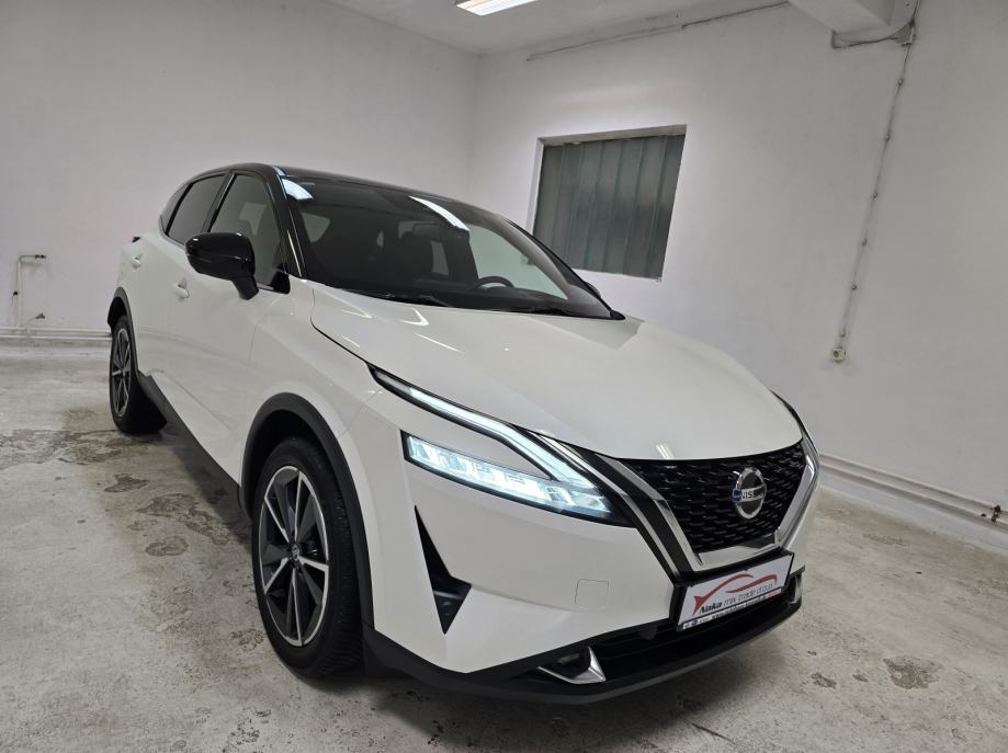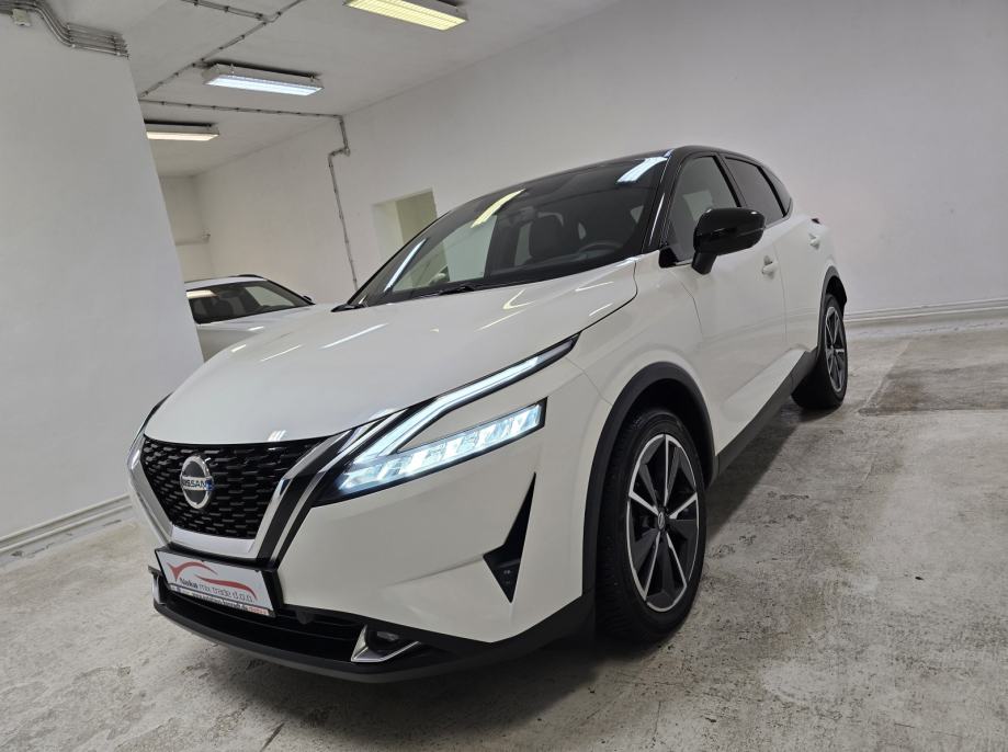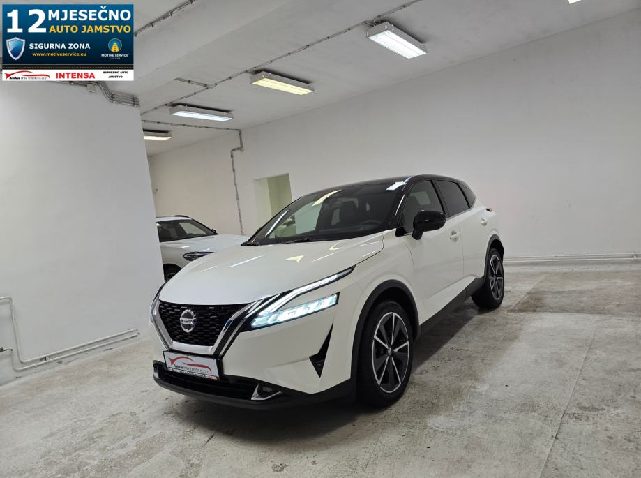 Oprema: Nissan Qashqai 1.3 DIG-T MHEV, Motor 1.3 Ltr. Mild-Hybrid 116 kW = 158 KS, 1332 cm3, **PAKET OPREME: TEKNA OPREMA**, **AUTOMATSKI MJENJAČ**, **BOJA VOZILA: WEISS/BLACK METALIK (BIJELA PERLA METALIK BOJA - POSEBAN DIJAMANTNI SJAJ U KOMBINACIJI SA CRNIM KROVOM - VIŠEBOJAN), ***BOSE OZVUČENJE VOZILA - POSEBAN ZVUK MUZIKE***, **AUTOMATSKA KLIMA 2 ZONE**, ABS, **TVORNIČKI ZATAMNJENA STRAŽNJA STAKLA**, **HEAD-UP DISPLAY**, **ADAPTIVNI TEMPOMAT ADAPTIVE CRUISE CONTROL (ACC) SUSTAV = TEMPOMAT SA KONTROLOM UDALJENOSTI VOZILA – DRŽI ODSTOJANJE OD VOZILA – AUTO SAM VOZI UBRZAVA/USPORAVA/PRATI TRAKE**, **FULL LED ADAPTIVNA SVJETLA – FAROVI**, **LED DNEVNA SVJETLA**, **LED STRAŽNJA SVJETLA**, **AUTOMATSKA SVJETLA + SENZOR SVJETLA**, **LED SVJETLA ZA MAGLU**, DUGA SVJETLA BEZ ODBLJESKA, **POMOĆ PRI PARKIRANJU: PREDNJI/STRAŽNJI PARKING SENZORI + 360° KAMERA SA DINAMIČKIM SMJERNICAMA**, ZRAČNI JASTUCI: PREDNJI/STRAŽNJI/BOČNI,**ALARMNI SUSTAV**, **CRNO NEBO**, **AMBIJENTALNA RASVJETA U VOZILU – NA VRATIMA ITD...**, **APPLE CARPLAY/ANDROID AUTO/USB/RADIO DAB/BLUETOOTH/WLAN/WIFI HOTSPOT**, **SJEDALA U KOMBINACIJI KOŽE I TEKSTILA + ELEKTRIČNO PODEŠAVANJE VOZAČEVOG SJEDALA + ELEKTRIČNO PODESIVI LUMBALNI DIO**, **GRIJANJE PREDNJIH SJEDALA**, SJEDALA PODESIVA PO VISINI, DUBINI, SPORTSKA SJEDALA, PREDNJI KOŽNI NASLON ZA RUKE SA PRETINCEM ZA SKLADIŠTENJE STVARI, **GRIJANO PREDNJE VJETROBRANSKO STAKLO (GRIJAČI U STAKLU ZA BRZO ODMRZAVANJE VOZILA PO ZIMI ''NEMA STRUGANJA LEDA'' + GRIJANO STRAŽNJE STAKLO**, **MULTIFUNKCIONALNI KOŽNI UPRAVLJAČ + PODESIVI UPRAVLJAČ PO VISINI I DUBINI + GRIJANJE UPRAVLJAČA + F1 +- MJENJANJE BRZINA NA VOLANU (formula)**, **POMOĆ PRI KRETANJU VOZILA NA UZBRDICI/NIZBRDICI = AUTO-HOLD FUNKCIJA ZADRŽAVANJA VOZILA**, **DRIVE MODE = NEKOLIKO ODABIRA NAČINA VOŽNJE 1. SPORT, 2. STANDARD, 3. ECO**, PUTNO RAČUNALO, ** VELIKI NAVIGACIJSKI SUSTAV ** NISSAN CONNECT NAVIGACIJSKI SISTEM KARTE CIJELE EUROPE + ** VIRTUALNA INSTRUMENTALNA PLOČA – COCKPIT **, **EL. HECKKLAPE – ELEKTRIČNO PODIZANJE I SPUŠTANJE PRTLJAŽNIKA – PRITISAK NA GUMB**, SUSTAV HITNIH POZIVA SOS, **SENZOR ZA KIŠU**, KONTROLA PRITISKA TLAKA U GUMAMA, **ELEKTRIČNO PODEŠAVANJE I SKLAPANJE RETROVIZORA**, **GRIJANI RETROVIZORI**, LED TREPTAJUĆA SVJETLA INTEGRIRANA U VANJSKO OGLEDALO, ELEKTRIČNI PODIZAČI PROZORA X4, ELEKTIČNI IMOBILIZATOR, ESP, KONTROLA GLASA, HANDSFREE, **KEYLESS GO SUSTAV ULASKA U VOZILO BEZ KLJUČA**, PALJENJE VOZILA NA GUMB, VELIKI PRTLJAŽNIK SA PREGRADOM + DUPLO DNO, **UPOZORENJE OGRANIČENJA BRZINE SA PRIKAZOM PROMETNIH ZNAKOVA**, PREPOZNAVANJE PROMETNIH ZNAKOVA, **INDUKCIJSKO PUNJENJE ZA PAMETNE TELEFONE**, **AUTOMATSKO ZATAMNJENJE UNUTARNJEG OGLEDALA**, ISOFIX SJEDALA ZA DJECU, UPOZORENJE NA UMOR VOZAČA OD PREDUGE VOŽNJE – POZIV ZA PAUZU, INTEGRIRANI SUSTAV MUZIKE, SOUNDSYSTEM, **ASISTENT ZA HITNO KOČENJE VOZILA**, CENTRALNO ZAKLJUČAVANJE VOZILA, SERVO UPRAVLJAČ, **KONTROLA PROKLIZAVANJA VOZILA ASR**, **KONTROLA PRAČENJA TRAKA + ZADRŽAVANJE VOZILA U VOZNOJ TRACI**, **SENZORI ZA MRTVI KUT**, START/STOPP-AUTOMATIK – MOGUĆNOST ISKLJUČENJA, MENU SA ODABIROM VIŠE STRANIH JEZIKA, TOUCHSCREEN – NAVIGACIJA SA ZASLONOM NA DODIR, BUSINESS PAKET, KROVNA ANTENA U DIZAJNU PERAJE MORSKOG PSA – CRNA BOJA, KROV CRNE BOJE, SUSTAV POMOĆI U VOŽNJI: UPOZORENJE NA MOGUĆI PREDNJI SUDAR, AUTONOMNI POMOĆNIK KOČENJA U NUŽDI, POMOĆ ZA DUGA SVJETLA, AUTOMATSKA SVJETLA, DETEKCIJA POKRETNIH OBJEKATA MOD DETEKCIJA PJEŠAKA I POKRETNIH OBJEKATA, DETEKCIJA UMORA, SIGURNOSNI SUSTAV ERA GLONASS SA AUTOMATSKIM POZIVOM U NUŽDI, BRAVA NA STRAŽNJIM VRATIMA,UPOZORENJE NA SUDAR NAPRIJED (FCW), DETEKCIJA KRETANJA OBJEKATA MOD, ASISTENT O STANJU PROMETA NA CESTAMA – GUŽVE, SUDARI, RADOVI ITD..., DJELJIVA STRAŽNJA KLUPA SA NASLONOM ZA RUKE, 5 VRATA, ELEKTRIČNA ''RUČNA'' PARKING KOČNICA, 12 UTIČNICE, **235/50 R19 ZOLLA ORIGINAL NISSAN TEKNA ALU FELGE SA CJELOGODIŠNJIM GUMAMA**, COC DOKUMENT - CERTIFIKAT VOZILA, UREDNA NISSAN SERVISNA KNJIŽICA, NISKI ZAGAĐIVAČ U SKLADU SA STANDARDOM EMISIJE EURA 6 ITD...ITD...