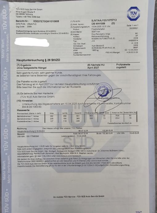 + TUV DOKUMENT sa posljednjeg tehničkog pregleda u Njemačkoj: