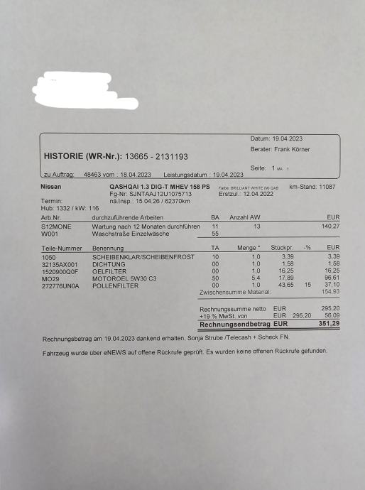 • 19.04.2023 (11.087 km) + RAČUN SERVISA,