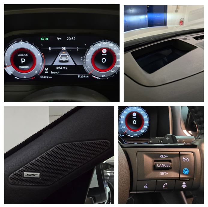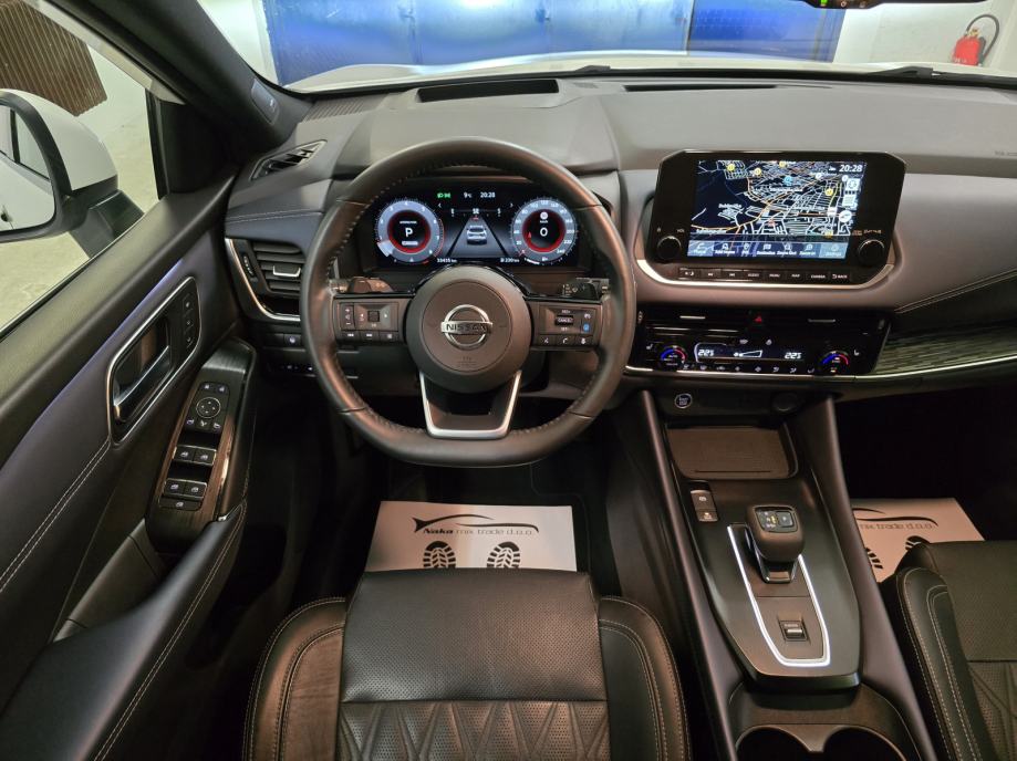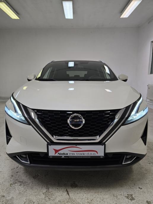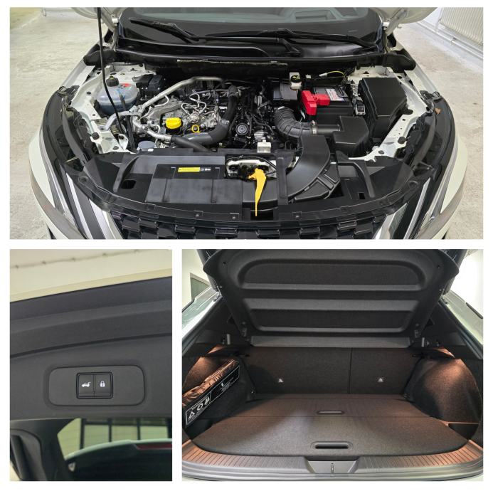 Oprema: **TEKNA PLUS PAKET OPREME = NAJVEĆI STUPANJ OPREME KOD NISSANA = FULL OPREMA**, **ORIGINAL SET 20'' ZOLLA TEKNA+ ALU FELGE SA GUMAMA**, **BOJA: BRILLIANT WHITE METALLIC (PERLA BIJELA METALIK BOJA SA BRILIJANTNIM SJAJEM = POSEBNA BOJA)**, 1.3 DIG-T MHEV, benzinski Motor 1.3 Ltr. Mild-Hybrid 116 kW = 158 KS, 1332 cm3, **AUTOMATSKI MJENJAČ**, **AUTOMATSKA KLIMA 2 ZONE**, **POMOĆ PRI PARKIRANJU: PREDNJI I STRAŽNJI PARKING SENZORI + 360 STUPNJEVA KAMERA SA DINAMIČKIM SMJERNICAMA**, ABS, **TVORNIČKI ZATAMNJENA STRAŽNJA STAKLA**, **HEAD-UP DISPLAY**, **ADAPTIVNI TEMPOMAT ADAPTIVE CRUISE CONTROL (ACC) SUSTAV = TEMPOMAT SA KONTROLOM UDALJENOSTI VOZILA – DRŽI ODSTOJANJE OD VOZILA – AUTO SAM VOZI UBRZAVA/USPORAVA/PRATI TRAKE**, **FULL LED ADAPTIVNA SVJETLA – FAROVI**, **LED DNEVNA SVJETLA**, **LED STRAŽNJA SVJETLA**, **AUTOMATSKA SVJETLA + SENZOR SVJETLA**, **LED SVJETLA ZA MAGLU**, ASISTENT ZA DUGA SVJETLA, **SENZOR ZA KIŠU**, **ALARMNI SUSTAV**, PROTUPROVALNI SUSTAV, **AMBIJENTALNA RASVJETA NA VRATIMA**, **ANDROID AUTO/APPLE CARPLAY/BLUETOOTH/USB/WLAN/WIFI HOTSPOT**, ZRAČNI JASTUCI: PREDNJI/STRAŽNJI/BOČNI, **PANORAMSKI KROV SA ELEKTRIČNOM ZAVJESOM – ZAŠTITA OD SUNCA**, **CRNO NEBO - TAPECIRUNG**, **KOMPLET KOŽNA SJEDALA TEKNA PLUS (PRESVLAKA/TAPECIRANJE SJEDALA: PREMIUM NAPPA KOŽA) + MASAŽA SJEDALA + GRIJANJE SJEDALA + MEMORIJA SJEDALA + ELEKTRIČNO PODEŠAVANJE SJEDALA + ELEKTRIČNA LUMBALNA POTPORA SJEDALA**, **BOSE PREMIUM OZVUČENJE VOZILA 10 ZVUČNIKA (BOSE SOUNDSYSTEM - POSEBAN ZVUK MUZIKE)**, PREDNJI KOŽNI NASLON ZA RUKE SA PRETINCEM ZA SKLADIŠTENJE STVARI, **GRIJANO PREDNJE VJETROBRANSKO STAKLO + GRIJANO STRAŽNJE STAKLO**, **MULTIFUNKCIONALNI KOŽNI UPRAVLJAČ + GRIJANI UPRAVLJAČ + SERVO + PODESIVI UPRAVLJAČ PO VISINI/DUBINI + F1 MJENJANJE BRZINA NA UPRAVLJAČU**, **AUTO-HOLD FUNKCIJA ZADRŽAVANJA VOZILA + POMOĆ PRI KRETANJU NA UZBRDICI/NIZBRDICI**, **EL. HECKKLAPE – ELEKTRIČNO PODIZANJE I SPUŠTANJE PRTLJAŽNIKA – PRITISAK NA GUMB**, PUTNO RAČUNALO, **DRIVE MODE = NEKOLIKO ODABIRA NAČINA VOŽNJE 1. SPORT, 2. STANDARD, 3. ECO**, ** VELIKI NAVIGACIJSKI SUSTAV ** NISSAN CONNECT NAVIGACIJSKI SISTEM KARTE CIJELE EUROPE + ** VIRTUALNA INSTRUMENTALNA PLOČA – COCKPIT (PROPILOT S NAVI-LINKOM)**, KROVNI NOSAČI, ELEKTRIČNO PODEŠAVANJE RETROVIZORA + GRIJANJE RETROVIZORA + RETROVIZORI S FUNKCIJOM AUTOMATSKOG SPUŠTANJA (KONTROLA RUBNJAKA), SKLOPIVI RETROVIZORI, LED TREPTAJUĆA SVJETLA INTEGRIRANA U VANJSKO OGLEDALO, ELEKTRIČNI PODIZAČI STAKLA X 4, ELEKTRIČNI IMOBILIZATOR, ESP, HANDSFREE, **KEYLESS GO – SUSTAV ULASKA U VOZILO BEZ KLJUČA**, PALJENJE VOZILA NA GUMB, KONTROLA GLASA, UPOZORENJE OGRANIČENJA BRZINE, PREPOZNAVANJE PROMETNIH ZNAKOVA NA CESTI, INDUKCIJSKO PUNJENJE ZA PAMETNE TELEFONE, AUTOMATSKO ZATAMNJENJE UNUTARNJEG OGLEDALA, ISOFIX SJEDALA ZA DJECU, UPOZORENJE NA UMOR VOZAČA – PREDUGA VOŽNJA, INTEGRIRANI SUSTAV MUZIKE, RADIO DAB, **ASISTENT ZA HITNO KOČENJE VOZILA**, SUSTAV HITNIH POZIVA, KONTROLA PRITISKA TLAKA U GUMAMA, CENTRALNO ZAKLJUČAVANJE VOZILA, SERVO UPRAVLJAČ, KONTROLA PROKLIZAVANJA VOZILA, KONTROLA PRAČENJA TRAKA SA ZADRŽAVANJEM VOZILA U VOZNOJ TRACI, START/STOPP AUTOMATIK – MOGUČNOST ISKLJUČENJA, BUSINESS PAKET, **SENZORI ZA MRTVI KUT**, TOUCHSCREEN EKRAN, DJELJIVA STRAŽNJA KLUPA SA NASLONOM ZA RUKE, VELIKI PRTLJAŽNI PROSTOR + DUPLO DNO SA PREGRADAMA, PRIKAZ VANJSKE TEMPERATURE NA EKRANU, SUSTAV HITNIH POZIVA SOS (ERA GLONASS), 5 VRATA, 5 SJEDALA, AUDIOSYSTEM, SERVICE-SYSTEM; GOOGLE SERVICES, NISSAN CONNECT SERVICES, DETEKCIJA POKRETNIH OBJEKATA MOD DETEKCIJA PJEŠAKA I POKRETNIH OBJEKATA, BRAVA NA STRAŽNJIM VRATIMA,UPOZORENJE NA SUDAR NAPRIJED (FCW), DETEKCIJA KRETANJA OBJEKATA MOD, ELEKTRIČNA ''RUČNA'' PARKING KOČNICA, ELEKTRONIČKA RASPODJELA SILE KOČENJA (EBD), FRONTALNI SUDAR (FCW),12V UTIČNICE, COC DOKUMENT - CERTIFIKAT VOZILA, UREDNA NISSAN SERVISNA KNJIŽICA +12 MJ. INTENSA AUTO JAMSTVO, NISKI ZAGAĐIVAČ U SKLADU SA STANDARDOM EMISIJE EURA 6 ITD...ITD...