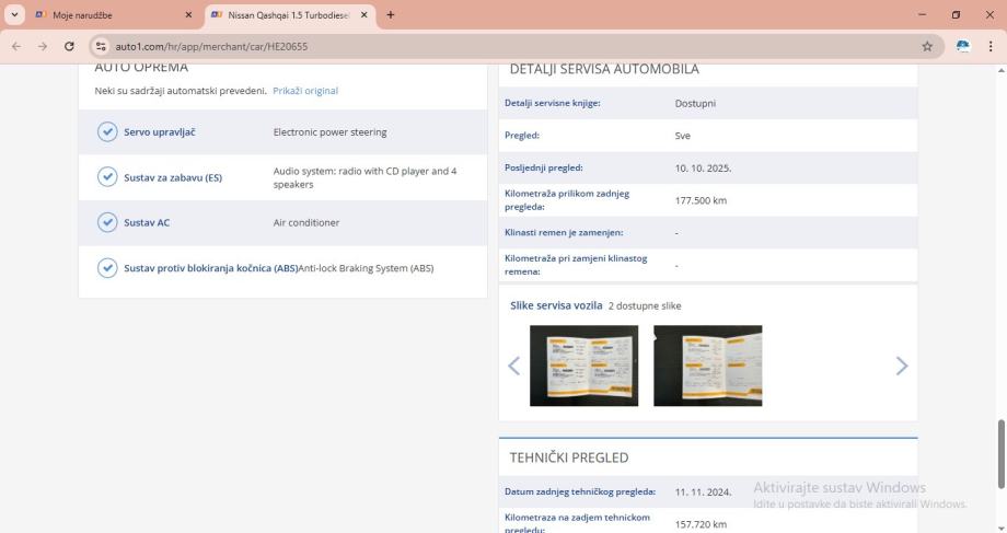 - napravljen redovni servis na 177.500km, veliki servis na 124.000km, posjeduje servisnu knjižicu i dokumentaciju