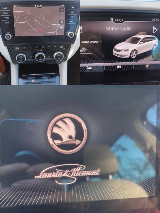 FULLL OPREMA -LAURIN & KLEMENT-navigacija,radar,automatska dvojna klima,tempomat,bež koža+alcantra,sportski sicevi,grijanje sjedala,android auto,parking senzori+kamera na ekranu,ekran na dodir,multifunkcionalni kožni volan,punjenje mobitela bez kabela,pomoč pri kretanju uz uzbrdicu,alu felge,maglenke,dnevna svjetla,automatska svjetla,nadzor pritiska u kotačima,senzor za kišu,putno računalo,krovni nosači,zatamljena stakla,start-stop sistem,ABS+ESP,isofix za djecu,zračni jastuci,AUX+USB priključak,handsfre,el.ogledala+grijanje ogledala+sklapanje ogledala,sva 4 el.stakla,volan podesiv+servo,nalon za ruku naprijed i iza,frižider u pretincu,centralno+daljinsko zaključavanje,2 ključa,original ozvučenje,svjetla u retrovizorima,svjetla pod nogama itd.....još puno toga i SVE ISPRAVNO