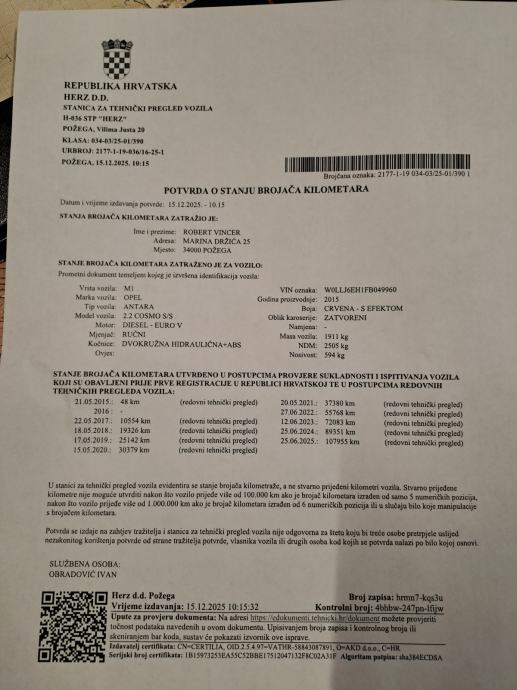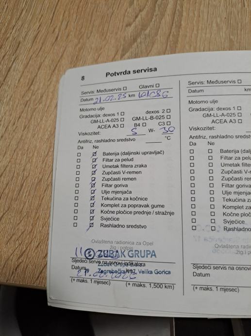 Auto je kupljen u Opel Dubrovnik, tamo je održavan prvih 5 godina. Ja sam ga prije 5 g. kupio od prvog vlasnika s 32 000 prijeđenih kilometara. Nastavio sam ga održavati kod Zubaka u Požegi, imam servisnu knjižicu, račune od kupovine auta i od svega što je rađeno na autu.