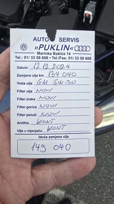 Uvoz njemacka...kilometrui original..ima servisu knjigu...carvertical provjerio kod kupnje...upravo napravljen veliki servis..promjena kanalnog remena i sve što ide s njim..vođena pumpa itd...