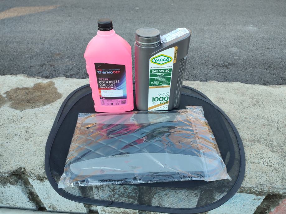 Novi prednji i stražnji brisači, nove prednje gume kupljene isto u 10.mj, boca ulja neotvorena uz njega.