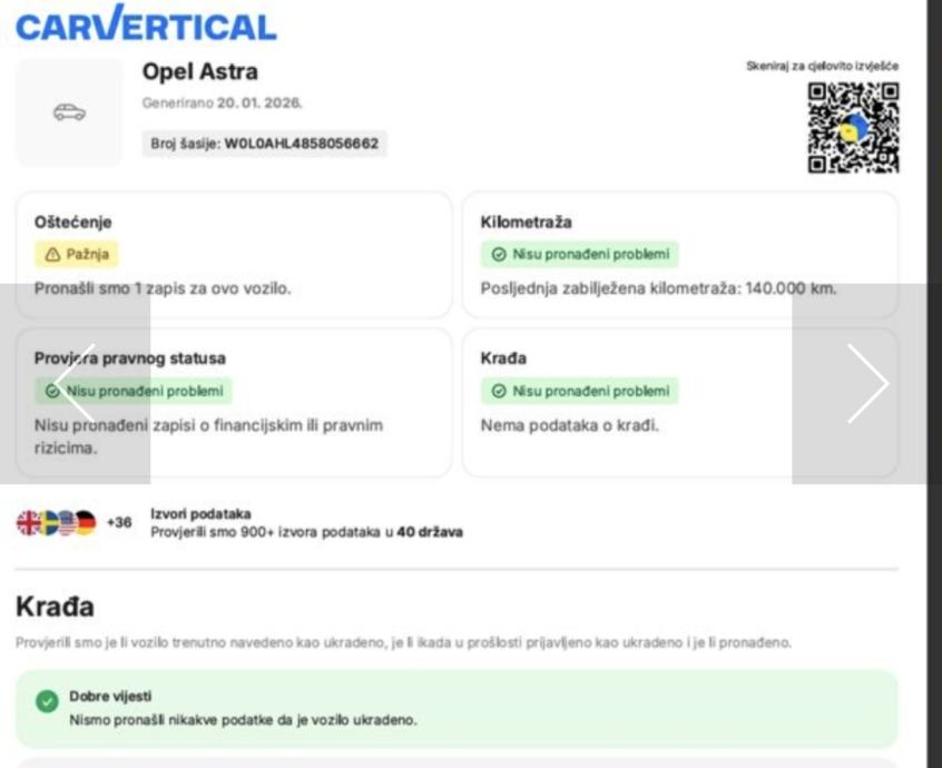 Dostupno izvjesce od CarVerticala. Cijena nije fixna