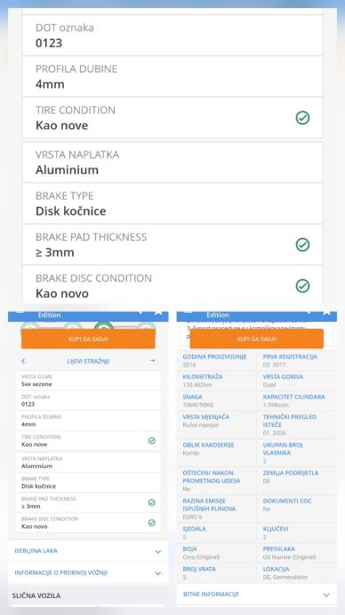 Kupljen od drugog vlasnika te nije sudjelovao u prometnoj nezgodi. Auto je kupljen u Njemačkoj na aukciji; prilažem slike u kakvom je stanju auto bio prilikom kupnje.Tehnički i vizualno u odličnom stanju. Gume su kao nove,dubina 4 mm DOT je 01/23