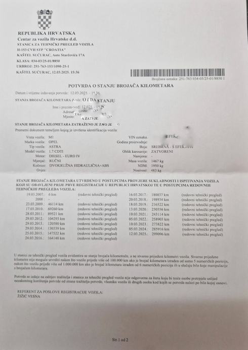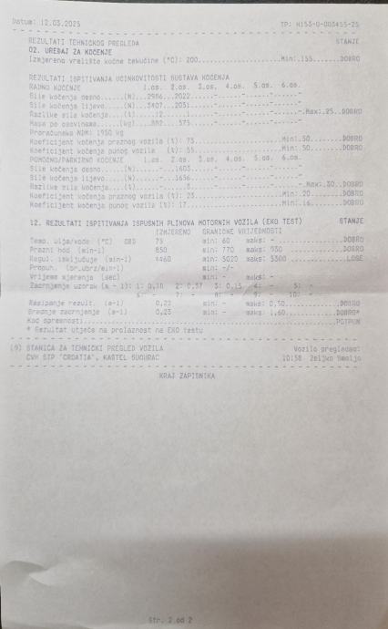 Potvrda o kilometraži u galeriji. Gume stare dvije godine, akumulator star pola godine i još pod garancijom.