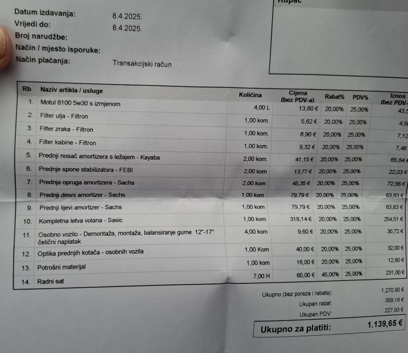 Cijena nije fiksna.