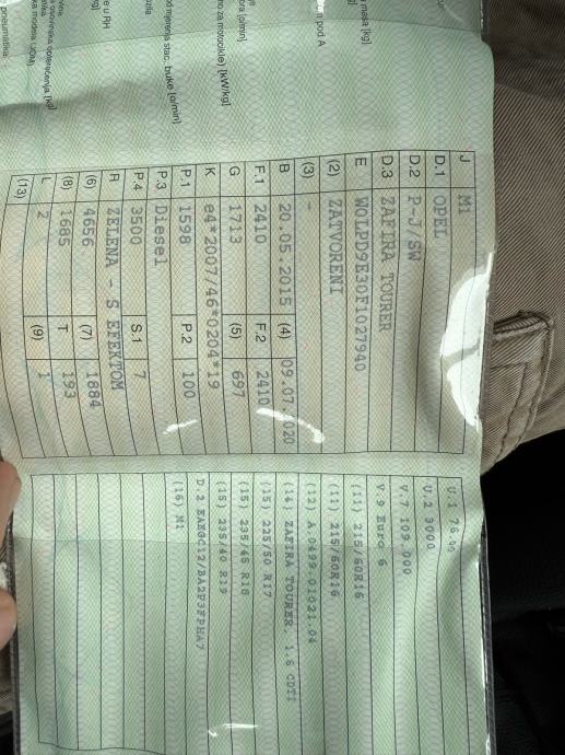 Prodajem rabljeno vozilo: Opel Zafira