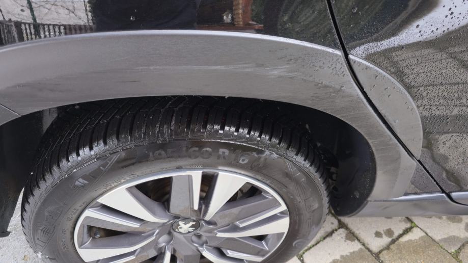 Ima ogrebotinu iznad stražnjeg desnog kotača (slikano) koja je samo na plastici i oštećenje na prednjoj desnoj felgi (slikano).