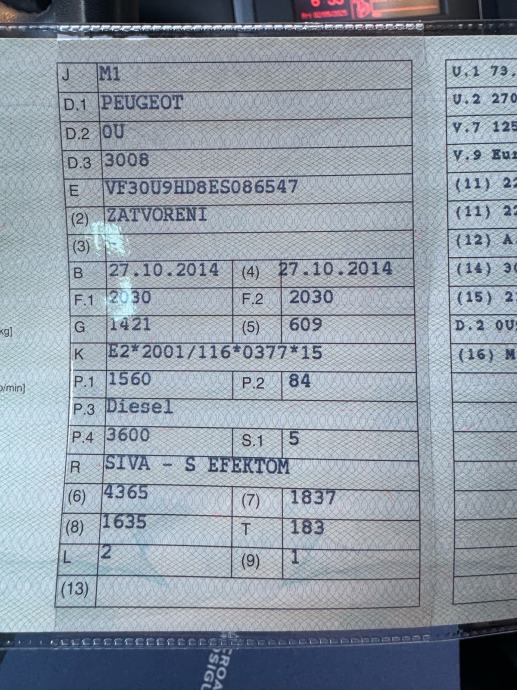PEUGEOT 3008 1,6 HDi (REG:02/26, SERVISNA-129000 km, LED, HR auto…)
