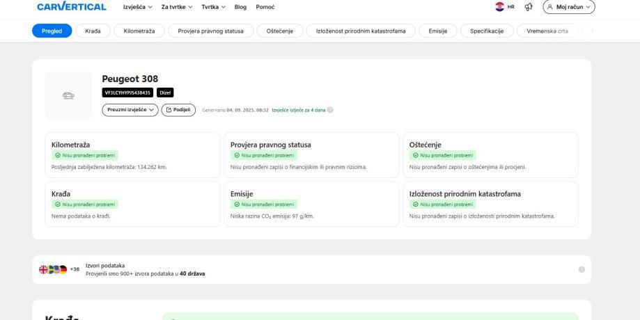 CARVERTICAL izvješće dostupno, šaljem na zahtjev!