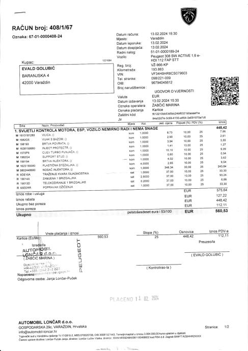 U posljednjih godinu dana zamijenjeni su i ugrađeni originalni injektori na sva 4 cilindra, start&stop superkondenzator (energy acumulator), prednji amortizeri, servisiran je klima uređaj, zamijenjeno vjetrobransko staklo te je s donje strane napravljena kompletna zaštita od hrđe. Ukupno je uloženo više od 3.000 EUR.